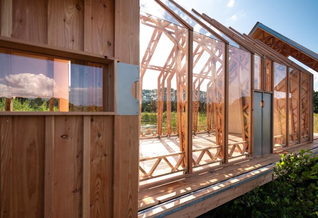 Beide modellen zijn gebouwd van duurzaam larikshout. Binnen is berken multiplex gebruikt voor de hoge kwaliteit en lichte kleur. Horizontale ramen bieden een panoramisch zicht, zonder dat het huis snel opwarmt door direct zonlicht.