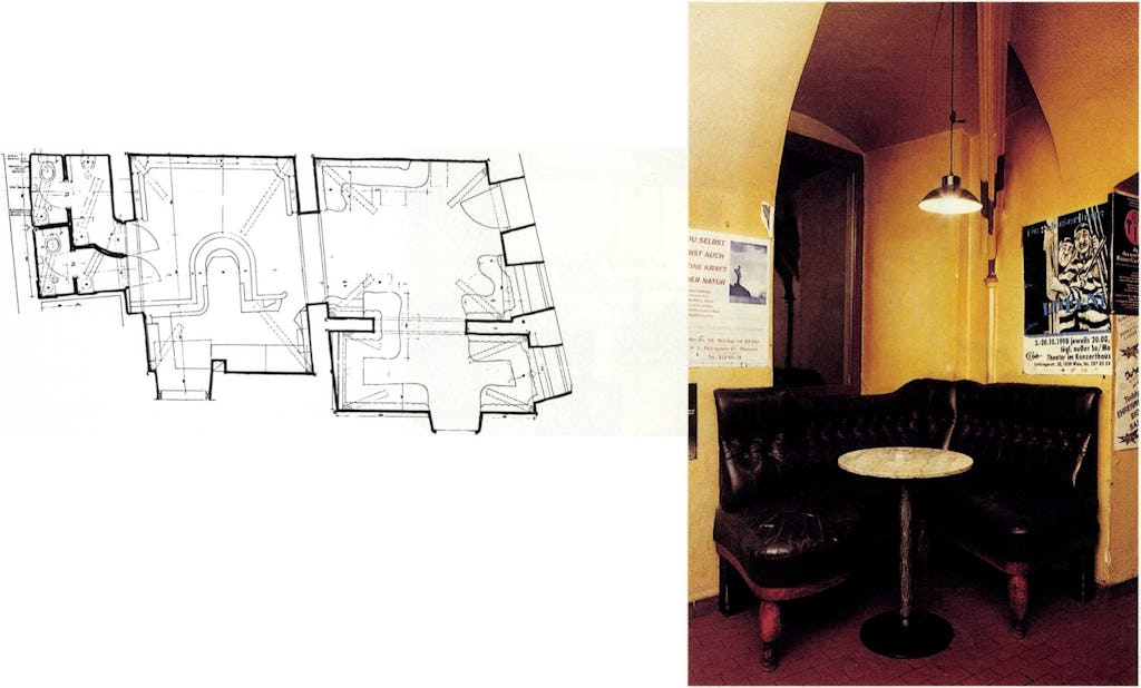 Deze tot in het detail doordachte gelaagdheid, deze ’Mehrschichtigkeit’, van vormen, typen, het voorhandene, de verandering, identiteit en verschil treffen we in al zijn raffinement en 'toevalligheid' aan in de beide ruimtes van het Kleines Café te Wenen (1970 en 1973- 1974), waarin Czech zijn welhaast obsessionele fascinatie voor de werking van spiegels tentoonspreidt. 15 De spiegels zijn hier een zelfstandige laag geworden die niet alleen de ruimte verdubbelen en kwadrateren, ze zijn tevens de gedeeltelijke 'weerspiegeling' van het spel dat Adolf Loos met ze speelt in zijn Karnter Bar. Gedeeltelijk, omdat Czechs spiegels de ultieme list van de verleiding spelen die Loos letterlijk heeft ’aufgehoben’ door de afwezigheid te projecteren, te ontwerpen aan een zoekende identiteit. De spiegels van Loos zijn zichzelf genoeg en vloeien over van vervuld verlangen. De spiegels van Czech zijn als het ware de ’derde’ term tussen het subject/object en het object/subject. Ze zijn letterlijk het ontwerp tussen voorwerp en onder-werp: een vlottende grens die aan elke zijde een afgeleide en dus virtuele realiteit laat bestaan. Een kuise obsceniteit, een liefdevolle inbezitname van de onbekende en de architectuur die tegelijkertijd als scène en als diva kan poseren in deze tussenruimte van gesublimeerde functionaliteit en gefunctionaliseerde lustbeleving.