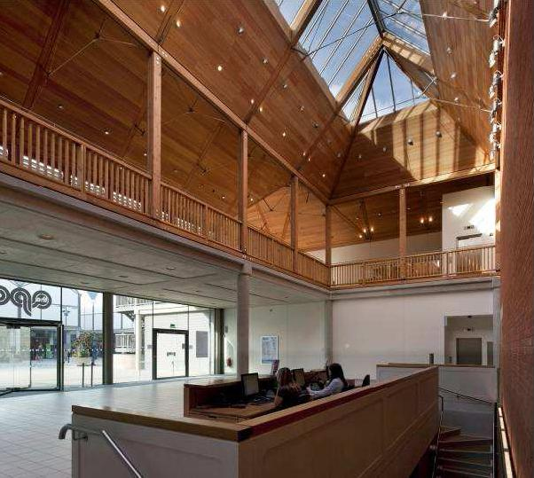 Op zowel de vloeren en het dak is 18mm dik eikenhout bevestigd aan een multiplexdrager van dezelfde dikte. Openingen in het balkonfronten laten geluid passeren en maakt hen minder reflecterend. De zitplaatsen, ontworpen door Luke Hughes en vervaardigd door Race, zijn zowel elegant als uiterst functioneel. Het feit dat de vloer kan worden omgezet van vlak naar trapsgewijs betekent dat de verhoogde vloer bestaat uit blokken met daarop stoelen bevestigd. De blokken kunnen onder de vlakke vloer worden opgeborgen.