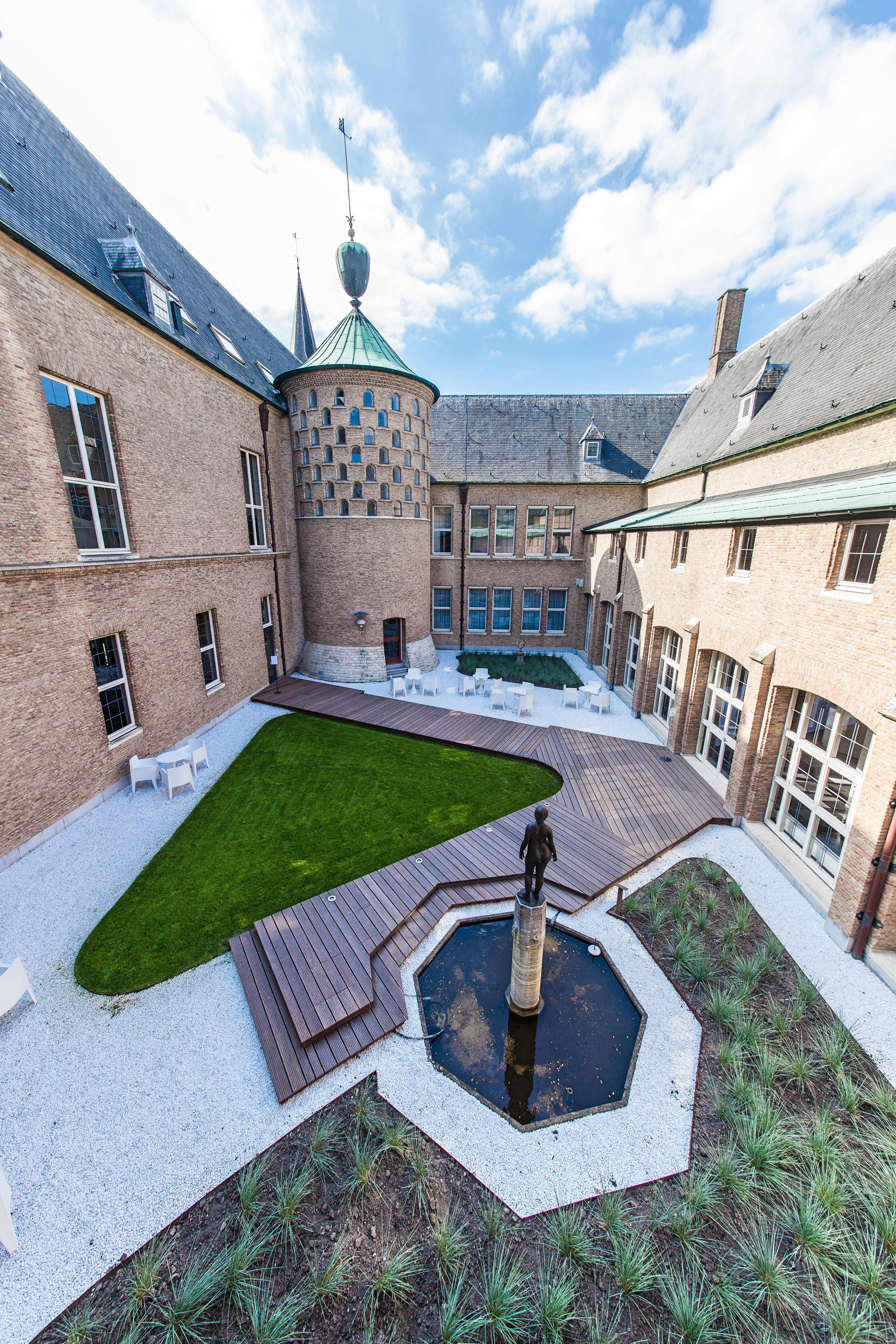 De ontmoetingsruimte is een pleisterplaats centraal gelegen in de Abdij waar de medewerkers van de Provincie Zeeland elkaar kunnen ontmoeten. Binnen de monumentale structuur van het gebouw zijn door M+R grote openingen aangebracht zodat de ontmoetingsruimte makkelijk toegankelijk is.