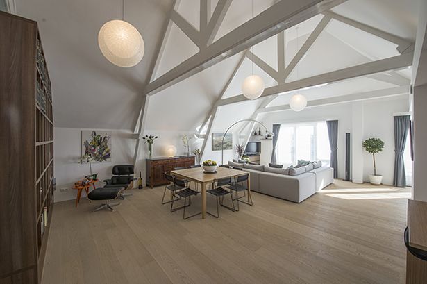 De ruime woonkamer en de masterslaapkamer liggen onder de balkenconstructie en de kap. In het verlengde van de masterslaapkamer ligt een zeer ruime inloopkast en een badkamer met een douche, toilet en bidet. De woonkamer staat in open verbinding met een geheel nieuwe keuken, met een aangrenzende bijkeuken.