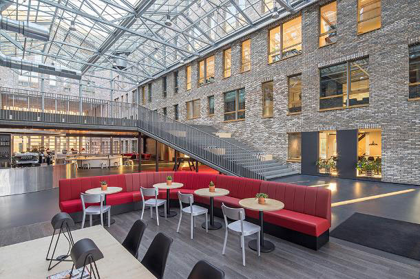 Als eerste en meest ingrijpende element zijn door middel van een kasachtig volume de twee bouwdelen op de begane grond met elkaar verbonden. Door de gemeenschappelijke voorzieningen via deze publieke ruimte met elkaar te verbinden, worden gebruikers van beide bouwdelen gestimuleerd om elkaar hier te ontmoeten. De voorzieningen bestaan uit een café-restaurant, vergaderruimten, een play area en een fitness ruimte.
