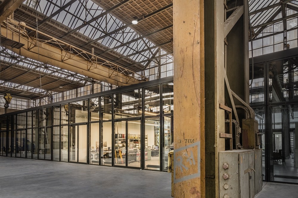 De nieuwbouw is open en transparant waardoor zicht ontstaat op de oude hal. Monk Architecten, die ook studio huurt in de Werkspoorkathedraal, liet zich voor de nieuw toevoeging inspireren door het materiaal en detail van de bestaande constructie en functie.