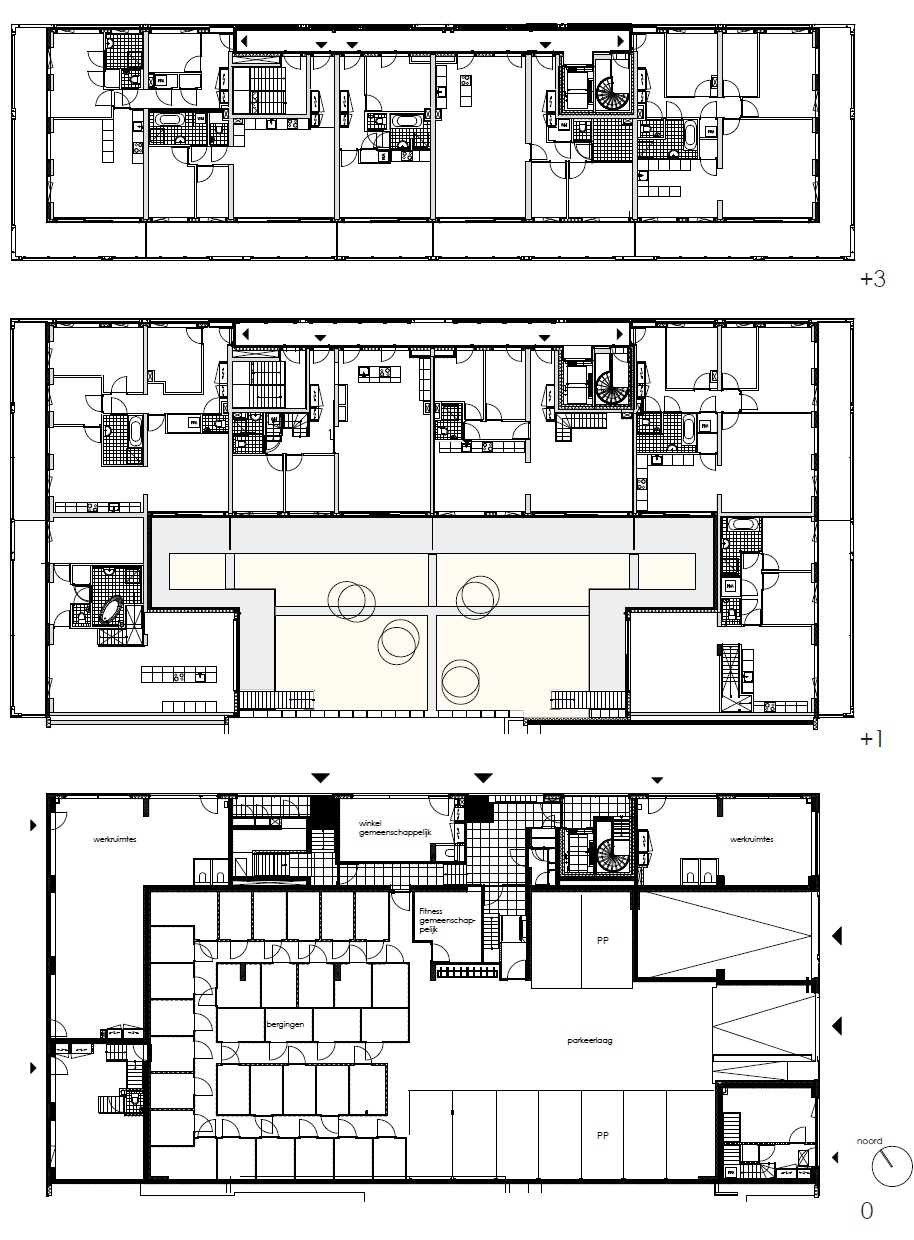 Samen wonen in een appartementencomplex kan meer zijn dan enkel het delen van de lifthal; gemeenschappelijke functies versterken het gemeenschapsgevoel en zijn een meerwaarde voor de woonbeleving. Er zijn 3 gedeelde bewonersruimten, zoals een [mogelijkheid voor] fitnessruimte, een gezamenlijk dakterras op 30 m hoogte en de VVE is eigenaar van een winkelruimte, in te vullen als gemeenschappelijke woonkamer, logeerstudio of koffiezaak.