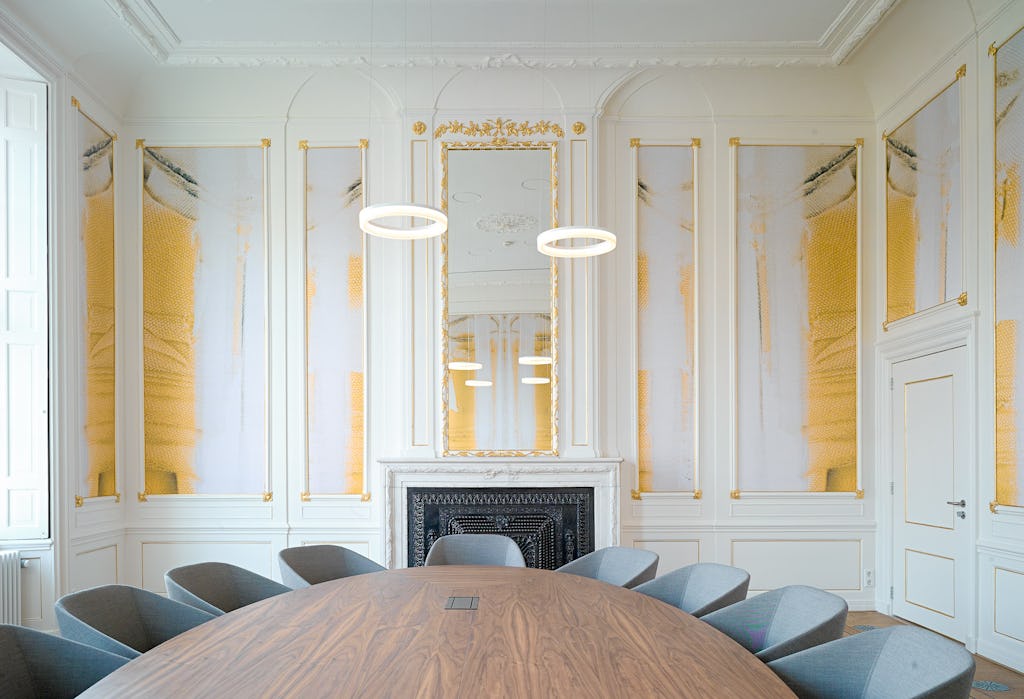 In de grote stijlkamer ondersteund de frisse heldere sfeer het goed bestuur: 'Buon Governo'. De meubels in de grote stijlkamer zijn samen met interieurontwerper Mart Marcus minimalistisch ontworpen voor een ingetogen bestuurlijke ambiance.