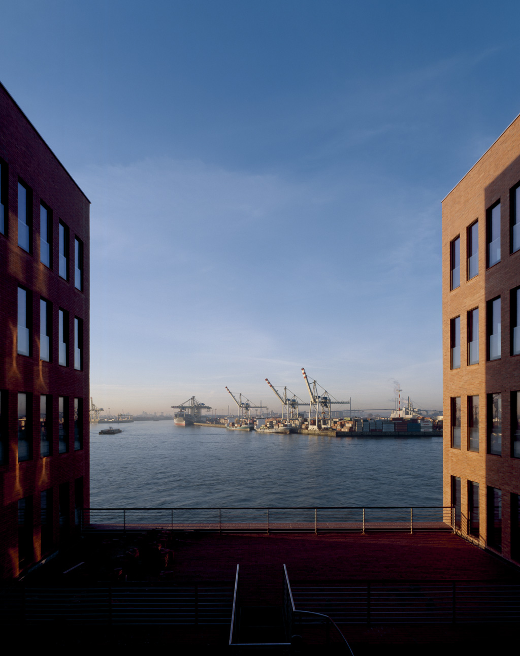 Het kantoorgebouw Oost is volledig toegesneden op zijn locatie. Het gebouw bestaat uit vier haaks op de rivier geplaatste volumes die onderling zijn verbonden door bruggen. Zeven kantooretages meanderen rond open binnenruimtes, zodat men vanuit elke kantoorruimte een ander uitzicht heeft op de Elbe. In de entreehallen bieden reusachtige glaswanden een monumentaal uitzicht. De begane grond ligt enigszins verhoogd en biedt ruimte aan restaurants, winkels en maritieme functies.