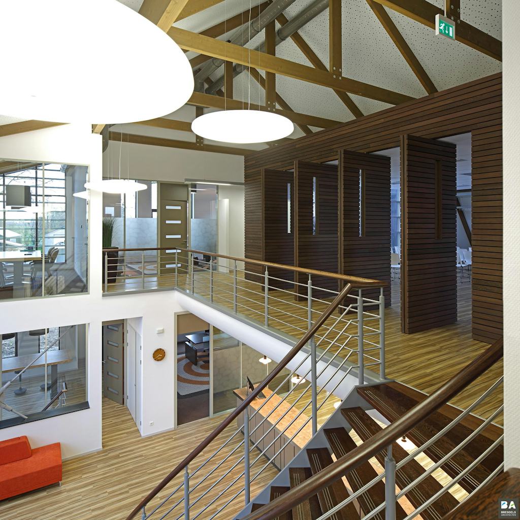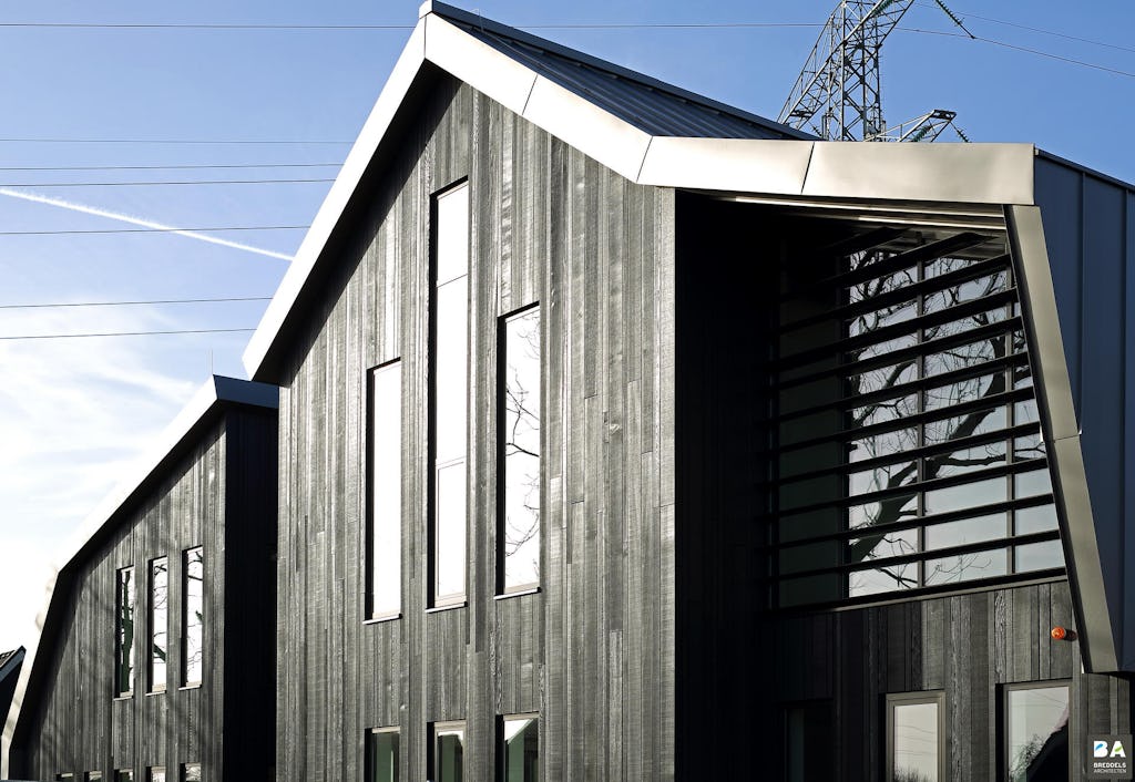 Aan het Verlaat 9 in Heerhugowaard is het nieuwe kantoorpand van Leegwater Houtbereiding verrezen. De gemeente gaf aan dat de nieuwbouw van het enorme bedrijf Leegwater Houtbereiding een acceptabele overgang moest maken tussen de lintbebouwing. Breddels Architecten heeft het grote volume boetserend op korrelgrootte gebracht.