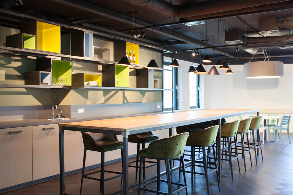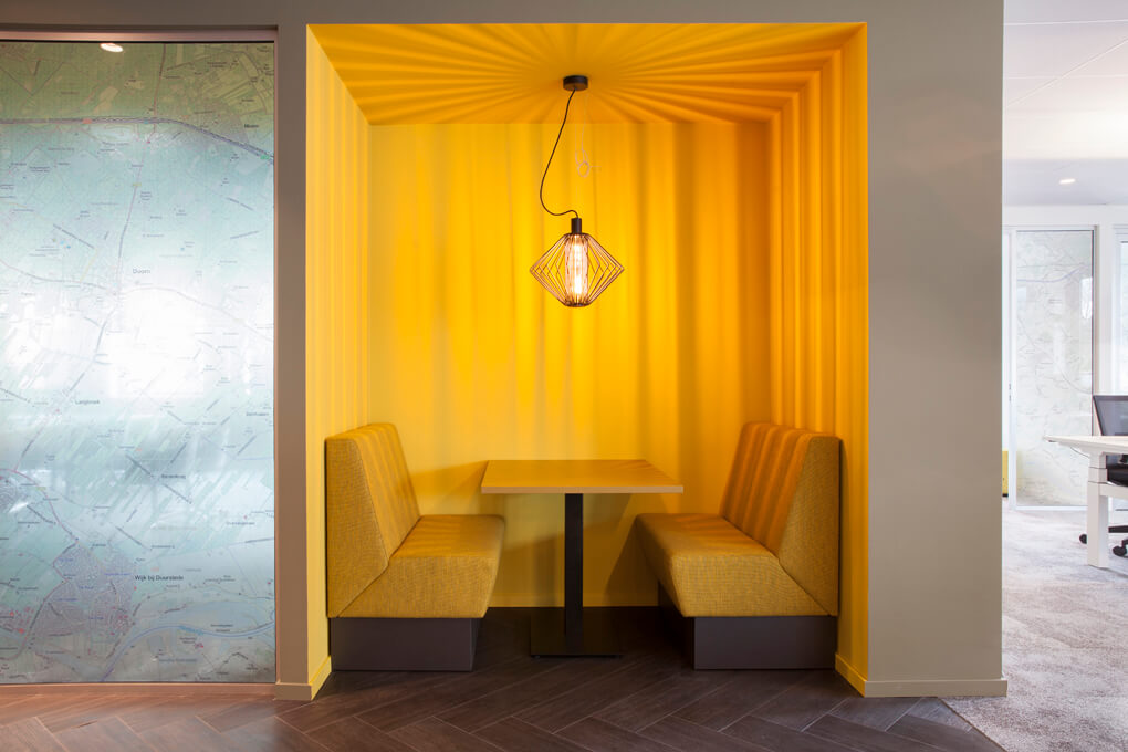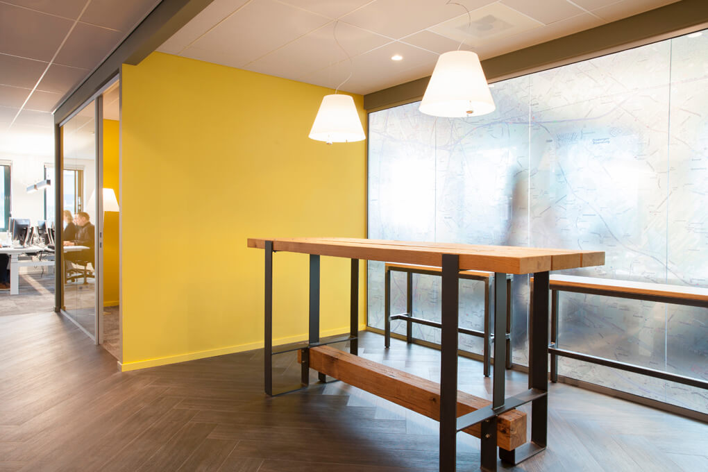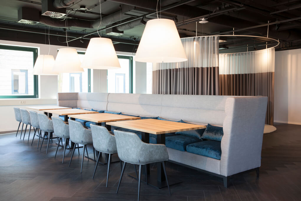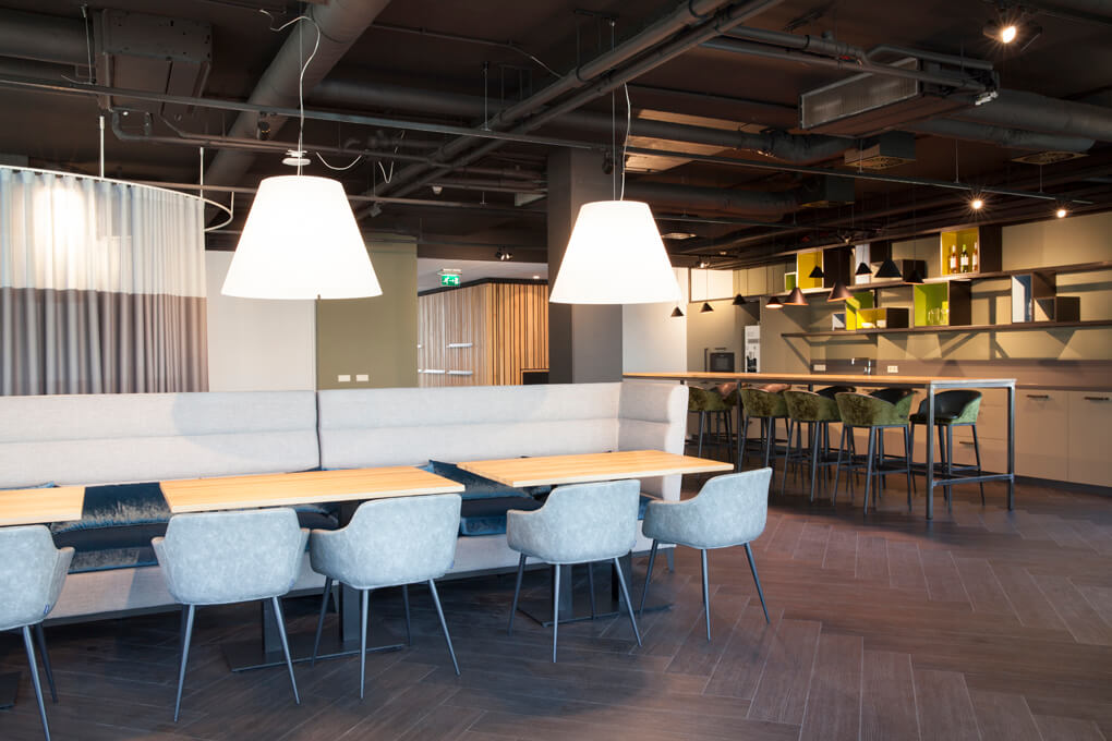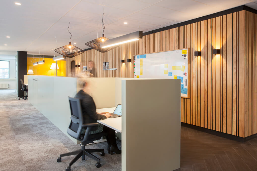 Tegenhanger is de 'creative space', een podium met zitplaatsen, voor presentaties en inspiratiesessies. Verlaagde systeemplafonds en robuuste bouwplafonds wisselen elkaar af, evenals werkverlichting en sfeervolle hanglampen en staande lampen. De met hout beklede wanden van de centrale ruimte zorgen voor nog meer sfeer en een natuurlijke uitstraling. Al met al draagt het nieuwe kantoor van Viveste bij aan werkplezier. Het nodigt uit om samen te werken en nieuwe ideeën en concepten te ontwikkelen.