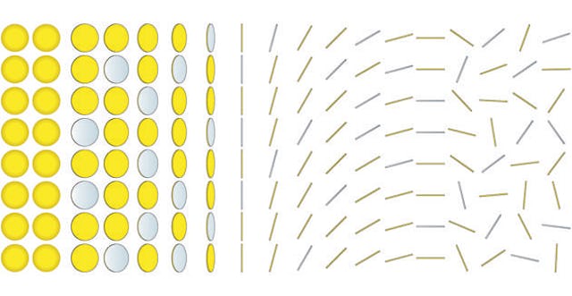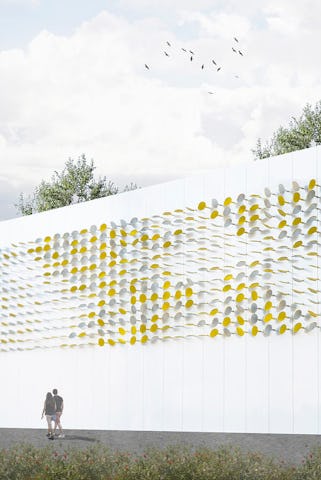 De ronde schijven worden tweekleurig uitgevoerd: één zijde is blank aluminium, de ander zijde voorzien van een goudgele coating. De wisselende stand van de schijven levert een continu veranderend visueel beeld op, waarin aluminium en goudgeel elkaar afwisselen. Het interactieve karakter en de veranderende lichtomstandigheden genereren een oneindige variatie aan patronen en kleurschakeringen.