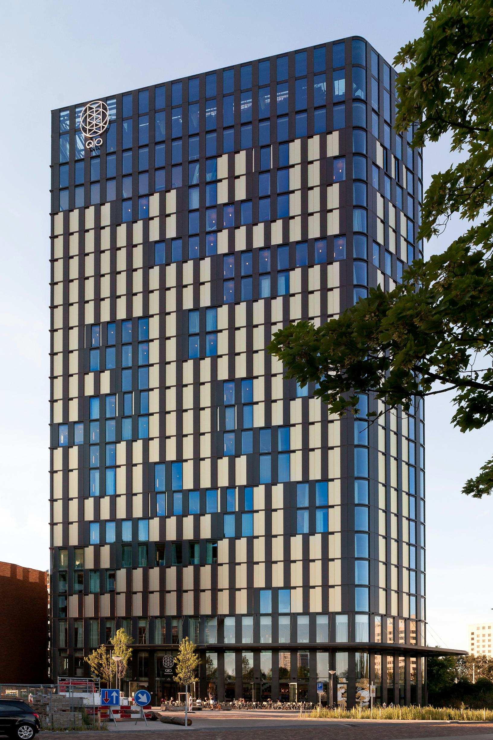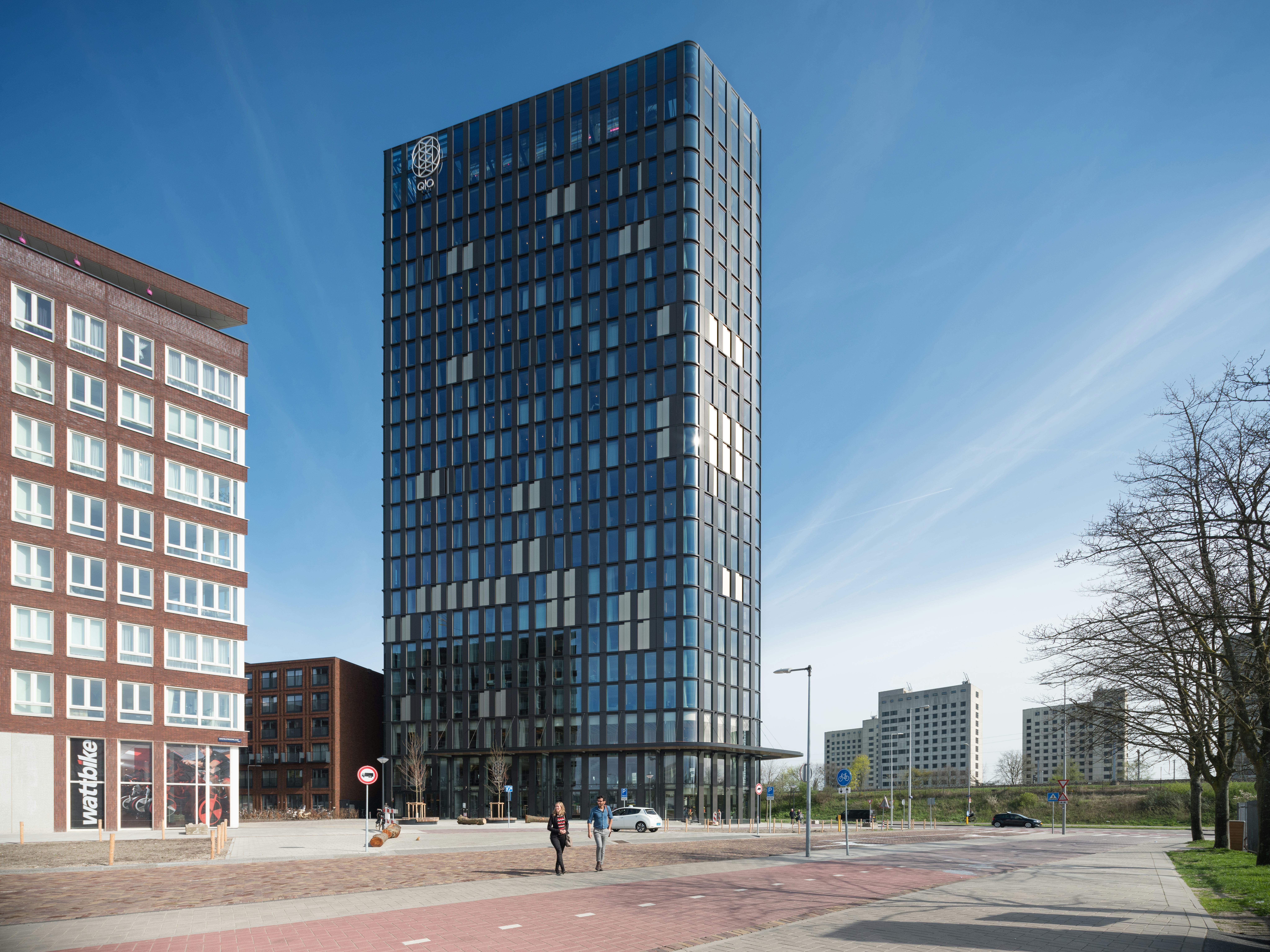Op alle plekken in het hotel, van de publieke restaurant- en vergaderlagen, de intiemere gangen en hotelkamers tot en met de skybar op de bovenste verdieping, wordt gezocht naar een specifieke relatie met de stad. Het toepassen van lokale materialen, de lokale (voedsel)productie, de relatie met het veranderlijke Nederlandse klimaat en de ruimtelijke, sociale verbondenheid met buurt en stad, zorgen ervoor dat het hotel geen generieke, inwisselbare halte wordt. In alle ontwerponderdelen ontleent QO Amsterdam zijn unieke karakter aan de plek waardoor de hotelgast gedurende zijn verblijf bij zich een tijdelijke inwoner van Amsterdam waant.
