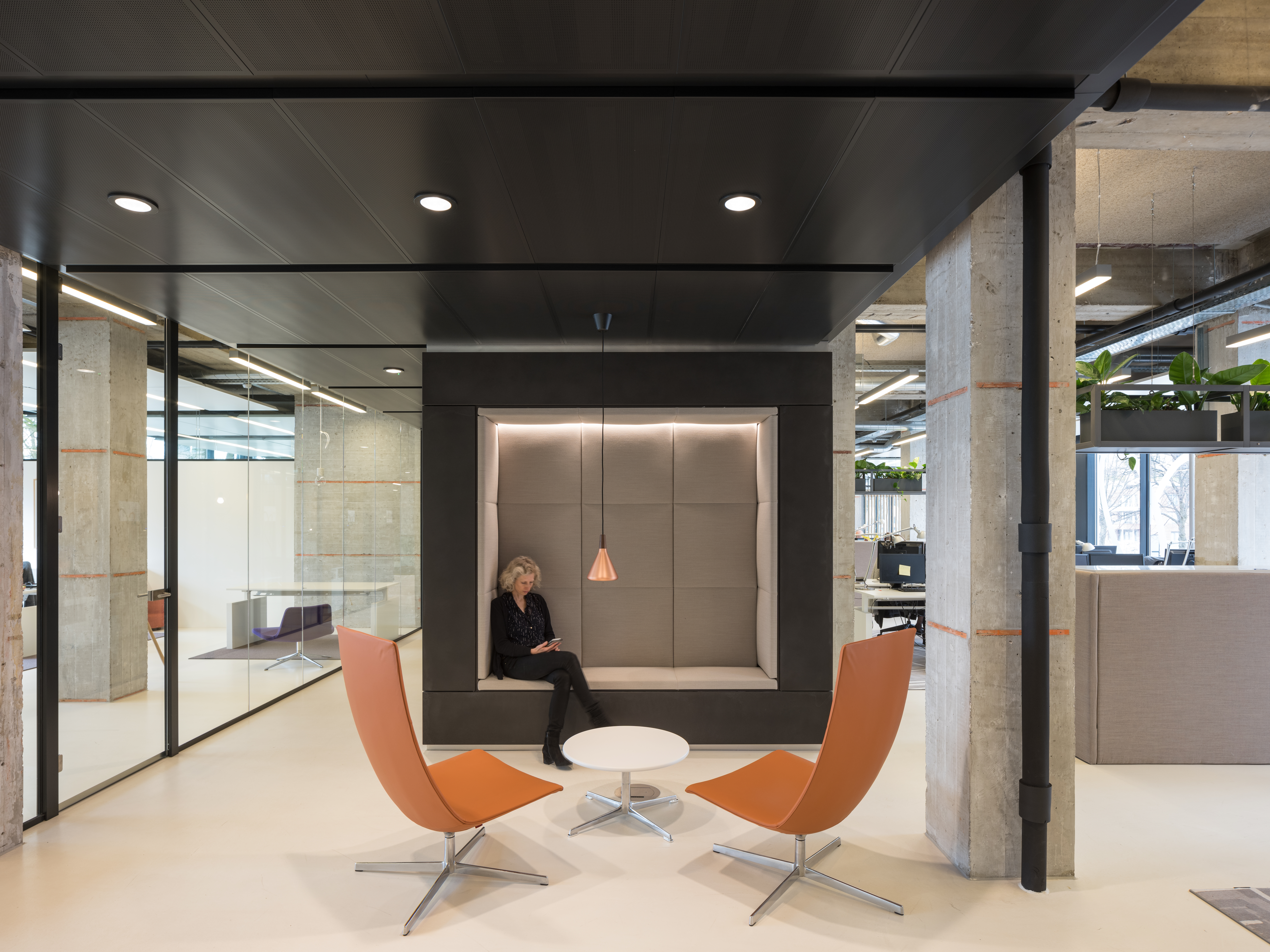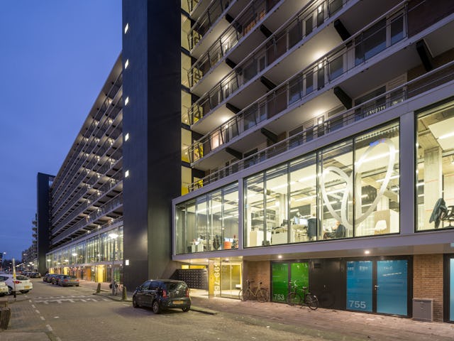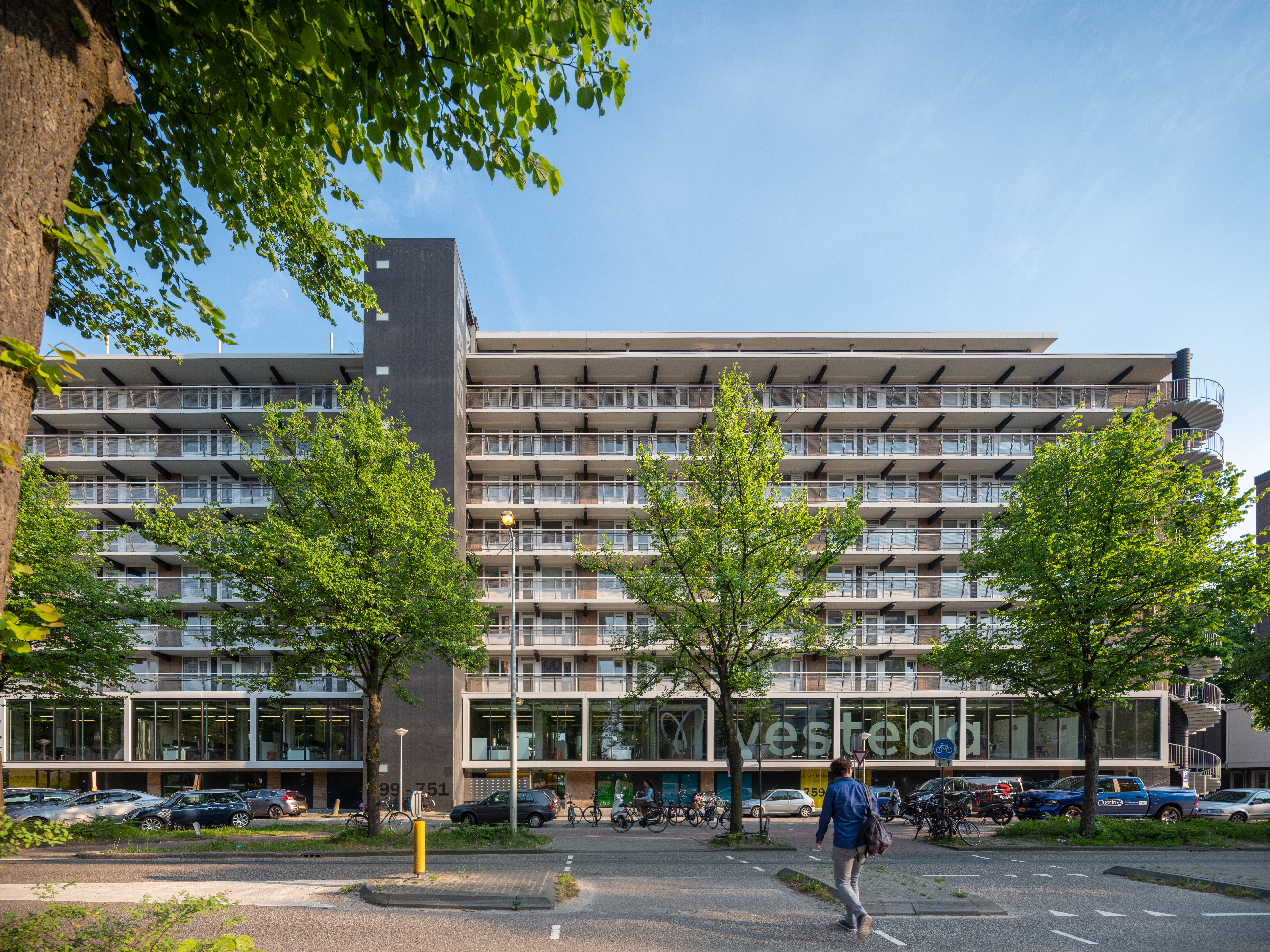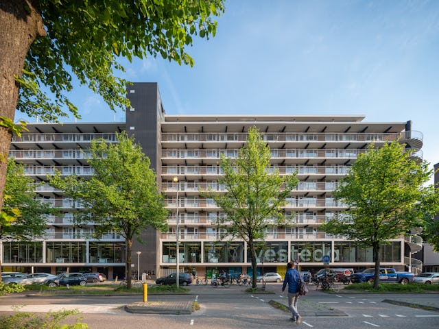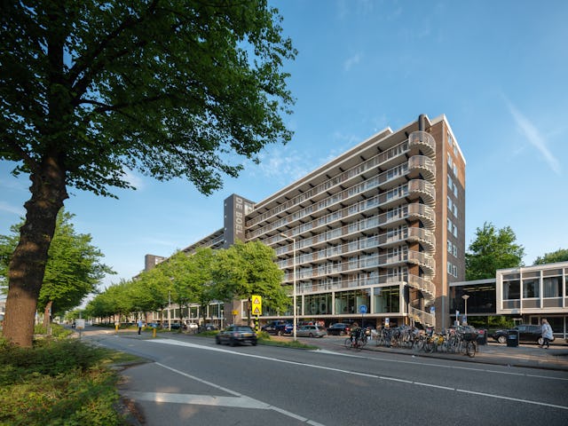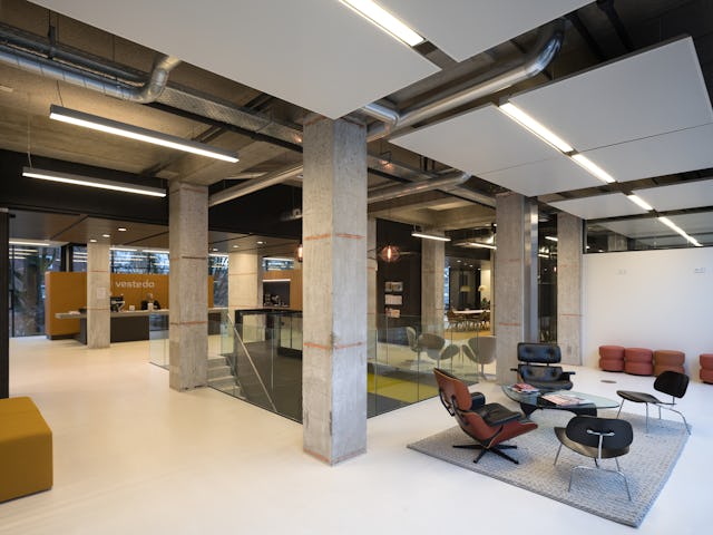 Op de eerste verdieping ontwierp Hans van Heeswijk architecten het interieur voor het nieuwe hoofdkantoor van Vesteda. 125 Medewerkers werken nu in een flexibele werkomgeving: een lichte loftachtige kantoorruimte met uitzicht op de prachtige omgeving. Met deze opwaardering geeft De Boel nieuw leven aan een bestaand flatgebouw op Zuidas Amsterdam.