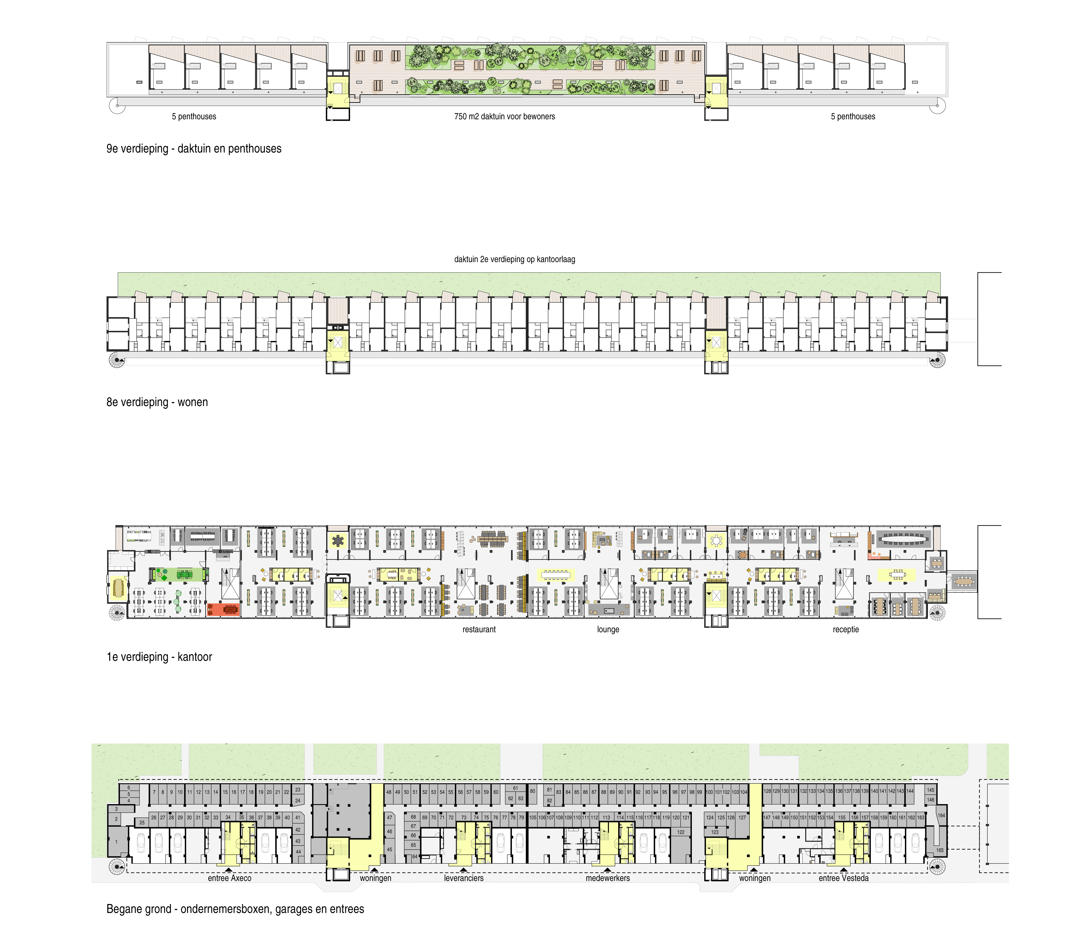 Door waardering van de bestaande kwaliteiten en het secuur toevoegen wat beter kan is op effectieve wijze een hoogwaardig eindresultaat behaald en een nieuwe eigentijdse samenhang ontstaan. De bestaande woningen zijn energiezuinig gemaakt en bieden nu een aantrekkelijk eigentijds wooncomfort. Tien woningen op de bovenste verdieping zijn uitgebreid tot penthouses en op het dak is een gemeenschappelijke daktuin aangelegd. De daktuin vormt een vijfde groene gevel met extra CO2 compensatie en absorptie van fijnstof en draagt hierdoor bij aan een goede ecologische balans. Het regenwater wordt gebruikt voor de irrigatie van de beplanting. De daktuin is uitgevoerd als een polderdak en kan 50.000 liter water bufferen, wat de overvolle riolering van de Zuidas ontlast.