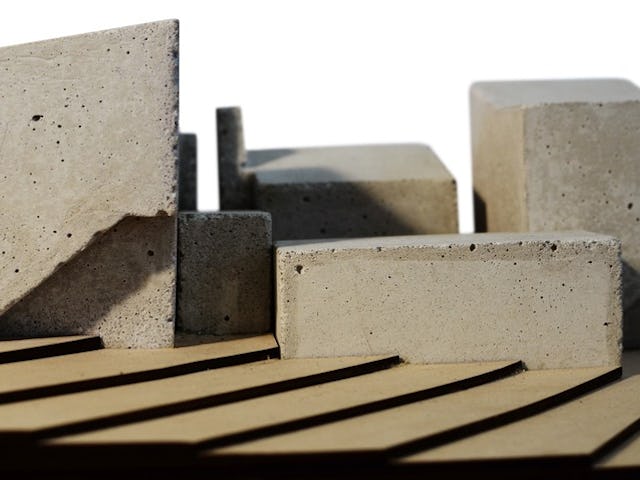De vijf weekendhuizen zijn identiek. Elk van de huizen bestaat uit zes volumen die zo zijn gepositioneerd dat een centrale patio ontstaat.