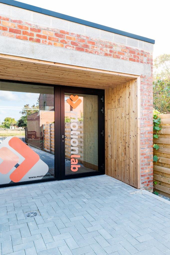 Wie binnenkomt, voelt zich meteen beschut door de luifel aan de inkom. Vanuit de wachtruimte leiden een houten zitbank, de geïntegreerde balie en een felle lichtstrook de blik meteen naar de grote zaal. Al het meubilair werd door het architectenteam ontworpen.