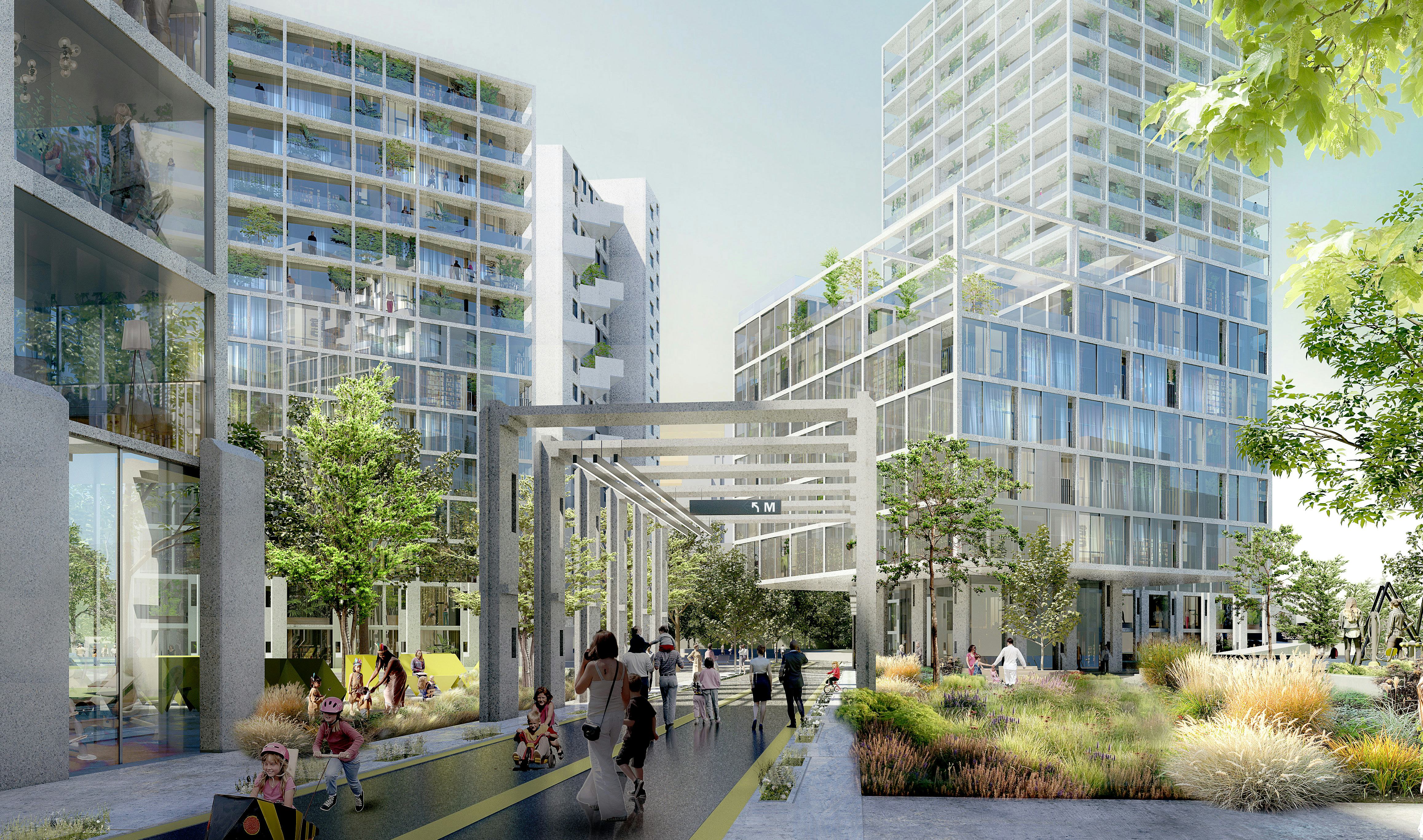 In totaal zullen ongeveer 1350 woningen worden gerealiseerd in diverse typen, zowel koop als huur, waaronder starterswoningen, middensegment, exclusieve huizen en zorgwoningen. De renders tonen een diversiteit aan volumes, met een hoge dichtheid en op grote schaal gepixelde blokken in het noorden. Aan de zuidrand vallen eveneens twee blokken op, die conceptueel gezien broertjes lijken. Een ervan ligt als geschakeld blok patiowoningen horizontaal, de ander staat als slab op zijn kant.