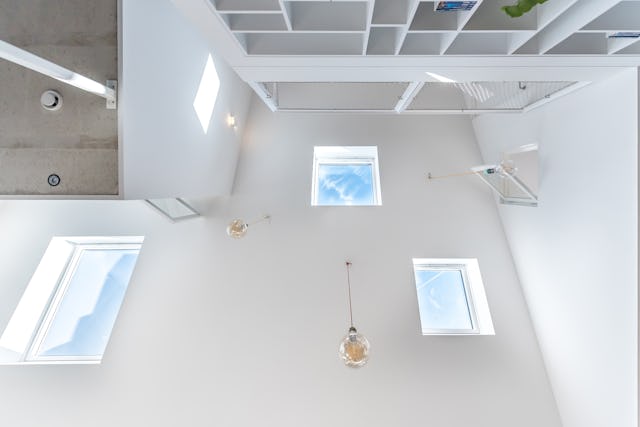 De functionele indeling van de woning bestaat uit een dienende kern in het hart van de woning. Rond deze kern liggen de verblijfsruimtes die uitkomen in een vide. In deze vide steken verschillende volumes als architectonische elementen in de ruimte, waardoor er een spel ontstaat tussen ruimte en volume. Aan de vide zit een balkon, vanuit de slaapkamers en badkamer op de verdieping zijn er interne ramen, die dit concept extra versterken.