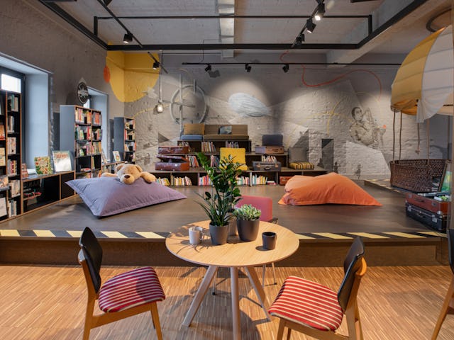 "Deze ‘Geschichte’ houdt zich ook bezig met de Amerikaanse luchtmachtbasis die tot 2008 in gebruik was, maar nu een nieuwe stedelijke ontwikkeling doormaakt waardoor er in het hart van Würzburg een nieuwe wijk ontstaat. Design Thinking - geleid door trainer en bibliotheekconsulent Julia Bergmann - was de ideale, mensgerichte projectaanpak om het creatieve proces te starten. Het leidde tot de optimale adaptie aan de gemeenschap van Würzburg. Het resultaat is een uitnodigend creatief concept dat ruimte en ervaringen biedt voor alle leeftijdsgroepen; een authentieke third place experience voor iedereen die je helpt contact te maken met anderen. Een verblijfsplek die voor een ‘goed bestede tijd’ zorgt," legt Aat Vos uit.