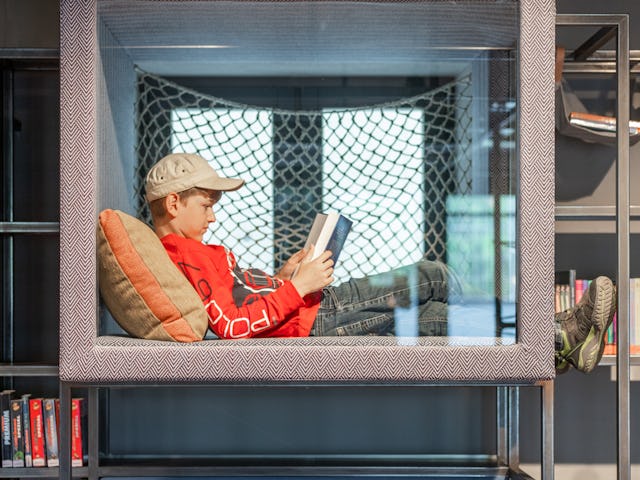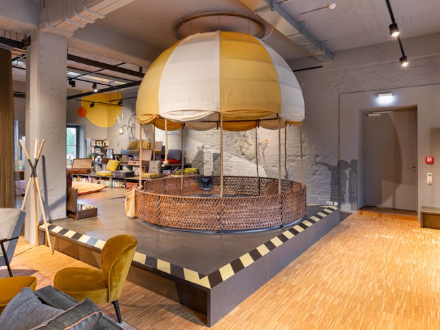 Deze informele ontmoetingsplek voor jongeren lijkt elk moment op te kunnen stijgen dankzij lange stalen buizen. De bekleding is een combinatie van verschillende stoffen met een tastbare textuur. Naast deze drie 'specials' biedt de Hubland Bibliotheek verschillende podia voor optredens en uitvoeringen, een koffiezone (als aanvulling op de coffee car), een gigantische leestafel/makerspace, kleinere lees/relaxcocons, een werkbar, een ruimte voor kinderen om te klimmen, klauteren en spelen, een keuken voor ouders en nog veel meer.