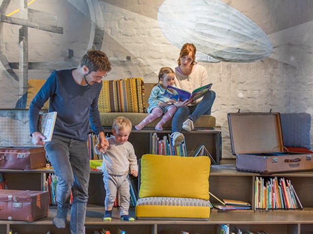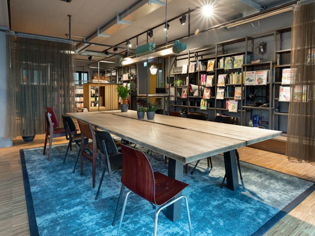 Het omvat de privé game zone (te sluiten met een gordijn), omringd door stalen boekenkasten en industriële wandlampen, maar ook een groepsstudie-cocon (met een plexiglas bolraam aan de bovenkant, wederom een verwijzing naar vliegtuigen).