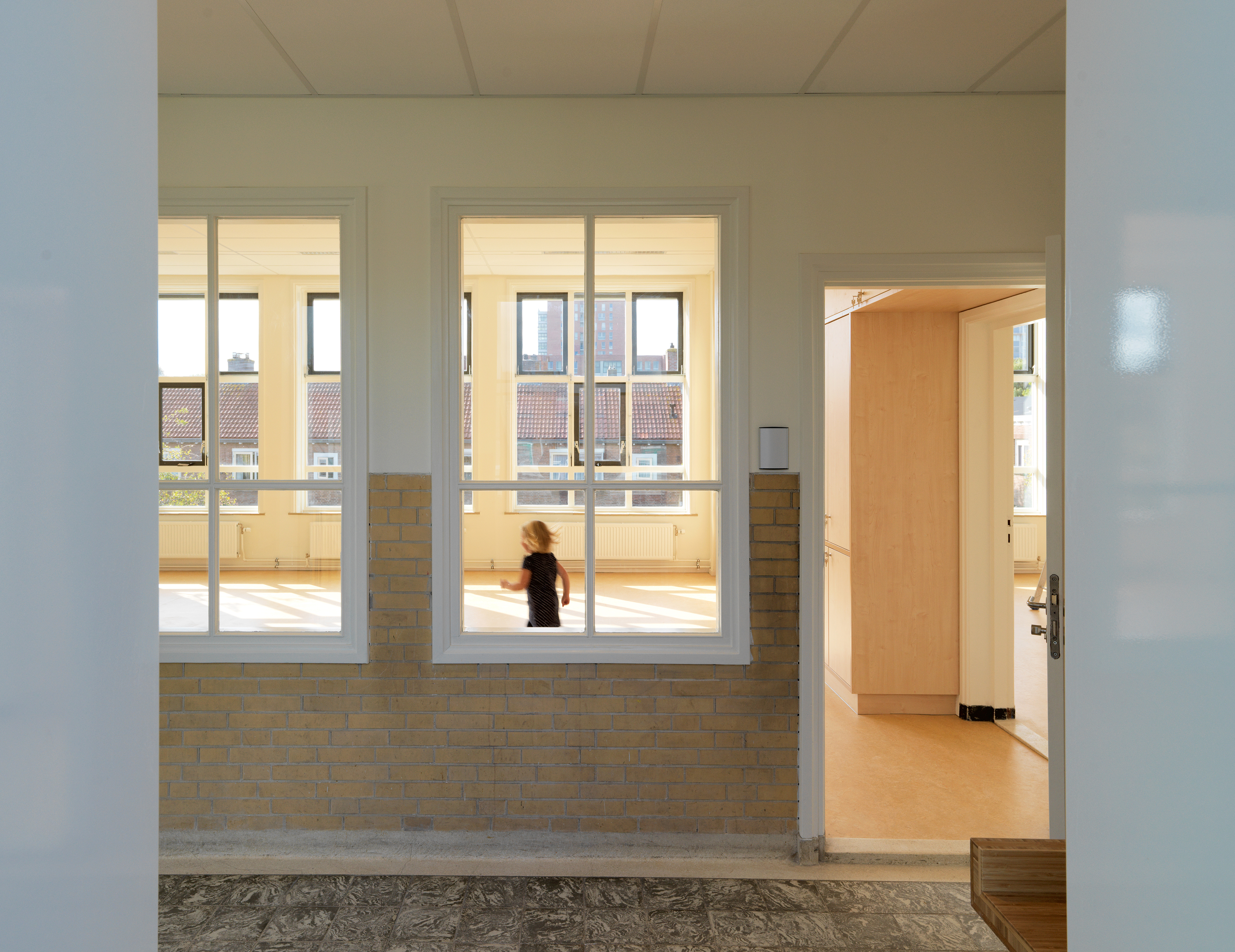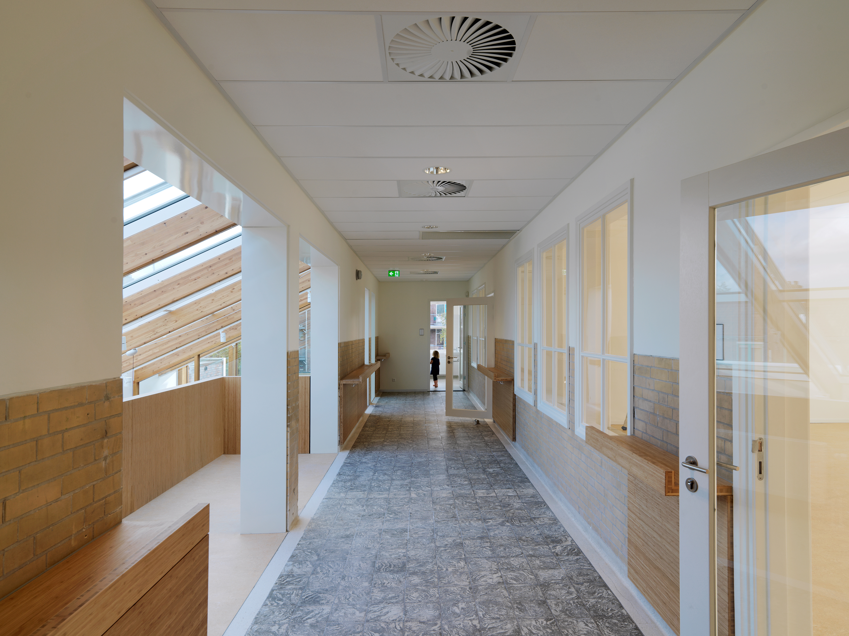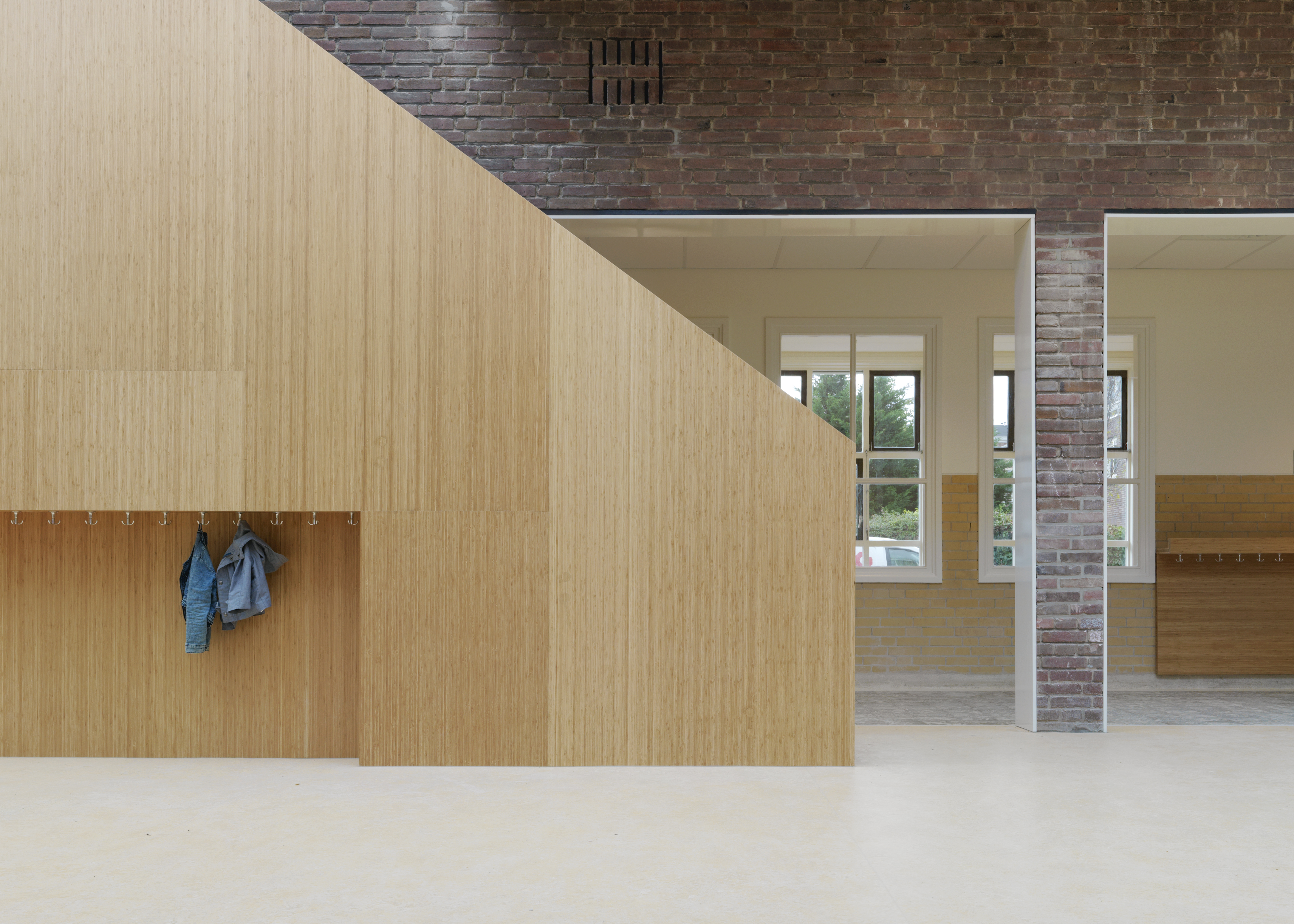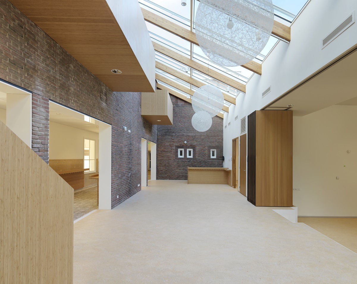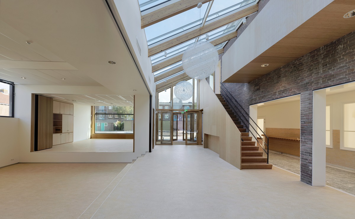 Er is een éénlaagse uitbreiding naast het hoofdgebouw geplaatst met daartussen een atrium met houten spanten. Hierdoor ontstaat een schoolgebouw met een licht en ruimtelijk hart. Dit atrium kan ook aan het speellokaal gekoppeld worden, zodat er plek is voor multifunctioneel gebruik als leerplekken, vieringen en ouderbijeenkomsten.