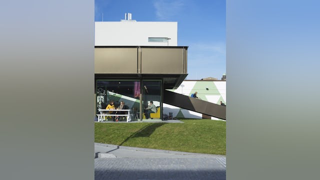 De ranke staalconstructie is zorgvuldig vormgegeven. De verbindingen zijn demontabel, in onzichtbare koppelingen gedetailleerd, waardoor de staalconstructie in de toekomst herbruikbaar is.