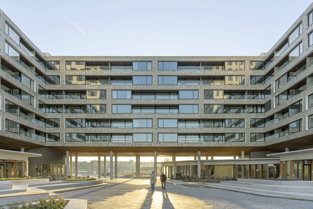 Door de opgetilde stoelvorm van het gebouw biedt Pontsteiger niet alleen wonen met uitzicht, maar ook een uitnodigende openbare ruimte, een plein in het IJ.