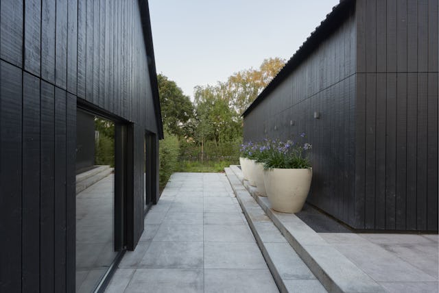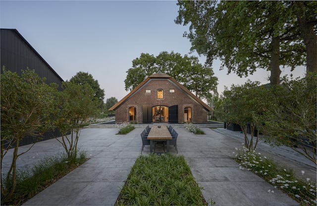 Aan een landweg in het buitengebied van Amersfoort is de restauratie van een monumentale boerderij naar een ontwerp van OOKarchitecten recent afgerond. Door de bestaande typologische kenmerken van een boerenerf te versterken en te implementeren in het ontwerp, is een besloten familiehof gecreëerd. De bestaande opstal is deels gesloopt en teruggebouwd waardoor een ensemble ontstaat van familiewoning, lange stallen, een garage en een kapschuur. De bestaande woonboerderij is volledig gerenoveerd en de bijgebouwen zijn bekleed met diepzwart houten delen.