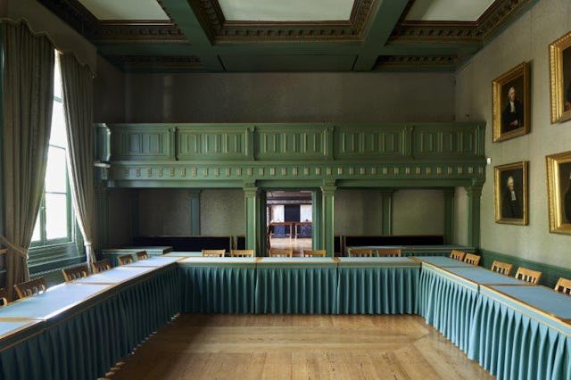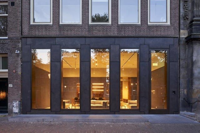 Toelichting door Office Winhov - Het Trippenhuis is een ontwerp van Justus Vingboons en werd tussen 1660 en 1662 gebouwd voor de broers Louis en Hendrick Trip, rijke handelaars in wapens en munitie. Het is een toonaangevend voorbeeld van het Hollands classicisme. Sinds 1812 is de KNAW de vaste bewoner van het Trippenhuis en biedt het monument samen de belende panden onderkomen aan medewerkers, gasten en de bijeenkomsten van de akademie. Hoewel het interieur van het Trippenhuis door de jaren heen met uiteenlopende visies werd aangepast, behield het zijn essentiële glorie. Het ontwerp van Office Winhov voor de nieuwe ontvangstruimten en het vernieuwde auditorium vormt een voortzetting van de ruimtelijk-typologische essentie van het oorspronkelijke gebouw.