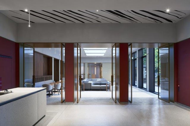 De ruimtelijke structuur van het Trippenhuis bestaat uit een enfilade van zalen en kamers langs de gevels met de ontsluiting en logistieke ruimtes in het middendeel van het gebouw. Deze zalen, zoals de Rembrandt Zaal - waar ‘De Nachtwacht’ ooit hing - worden gedefinieerd door hun ceremonieel gebruik, proportie, kleur, wandafwerking en plafonddecoratie. Het nieuwe ontvangstgebied bestaat uit een enfilade van kamers en zalen, uitgestrekt vanaf de historische entree tot aan het auditorium in de binnentuin. Voorzieningen, ondersteunende faciliteiten en alle techniek zijn naadloos in het ontwerp ingepast. Vaste elementen maken onlosmakelijk deel uit van het interieur. Voor de realisatie is samengewerkt met overwegend lokale makers. In de ontvangstruimtes wordt het interieur bepaald door het gebruik, de proportie, lichtinval, kleur en materiaal. Ontwerpmotieven uit het historische gebouw keren op eigentijdse wijze terug waarmee oud en nieuw zich met elkaar verbinden.