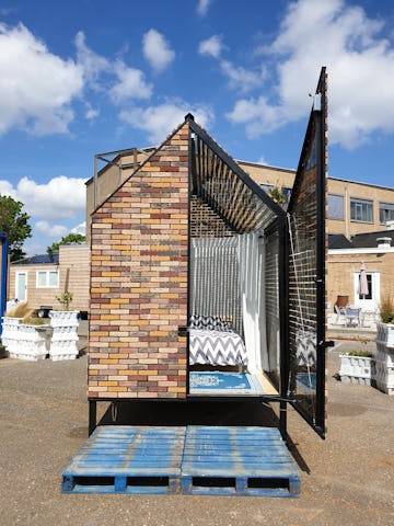 We zien de eerste versie van de Floating Bricks House als prototype, als testcase en experiment. De komende jaren zullen we het product monitoren en daar waar nodig verbeteren. Op dit moment maakt de Floating Bricks House als slaapcabine deel uit van de Culture Campsite in Rotterdam, waar overnacht kan worden in verschillende objecten. Ook zien we de Floating Bricks House als een meubelstuk waarin vergaderd kan worden in bijvoorbeeld een grote loods, als huisje in je achtertuin, als verblijf in je volkstuin, als stiltewerkplek etc. Daarnaast is de Floating Bricks als dak of gevelelement te beschouwen waar verschillende toepassingen voor denkbaar zijn.