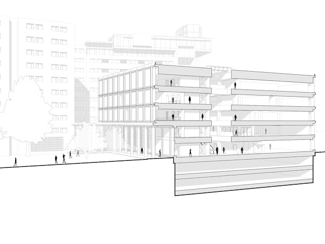 Het gebouw markeert de herinrichting van de VUmc Campus. De herinrichting moet resulteren in een campus waar ontmoeting, inspiratie en kennisuitwisseling centraal staan. Om dit te realiseren wordt de Botanische Tuin omgevormd tot een omsloten binnentuin met een aangename verblijfskwaliteit voor zowel patiënten als overige bezoekers.