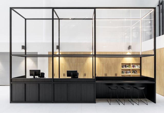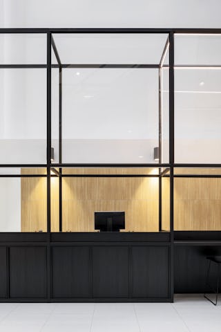 De herkenbare eikenhouten kaders van het museum zijn daarom als vorm en module leidend geweest in het ontwerp van maatwerk wanden en afscheidingen. Naast eiken kaders en frames zijn er ook stalen frames ontworpen die zijn geïnspireerd op expositie meubels.