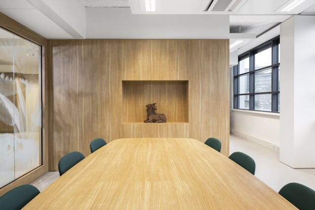 Er is gekozen voor een heldere, eenvoudige materialen selectie: eiken, wit, zwart, kleuraccenten, veel planten en grafische prints gerelateerd aan de Naturalis identiteit.