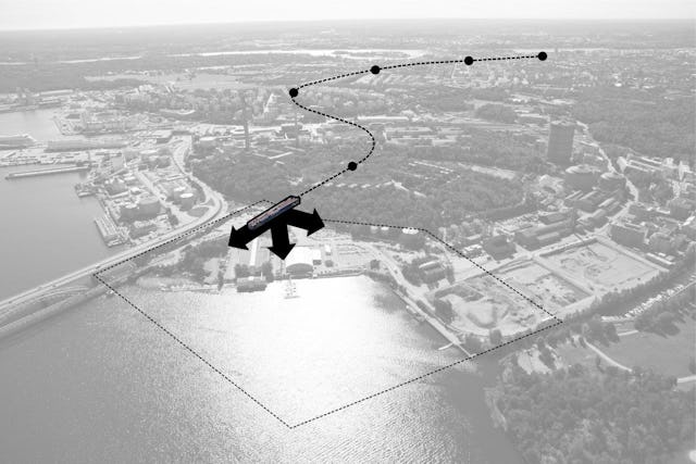 In Zweden is de inval van het zeker in de winter schaarse daglicht in de appartementen cruciaal. Kolkajen/Ropsten is echter op het noorden en oosten georiënteerd. Om dit probleem op te lossen, ontwierp Mandaworks/Adept een nieuw eiland op palen, waardoor een op het zuiden georiënteerde publieke ruimte ontstaat. Met deze ontwerpkeuze bouwt ze voort op het gegeven dat de waterkant niet vastligt maar door achtereenvolgende landaanwinningen een dynamische contour vertoont. Het betonnen dek op palen dat een oppervlakte van 23.000 vierkante meter heeft, vormt het eerste nieuwe woningeiland van Stockholm.