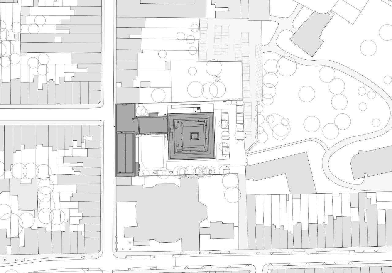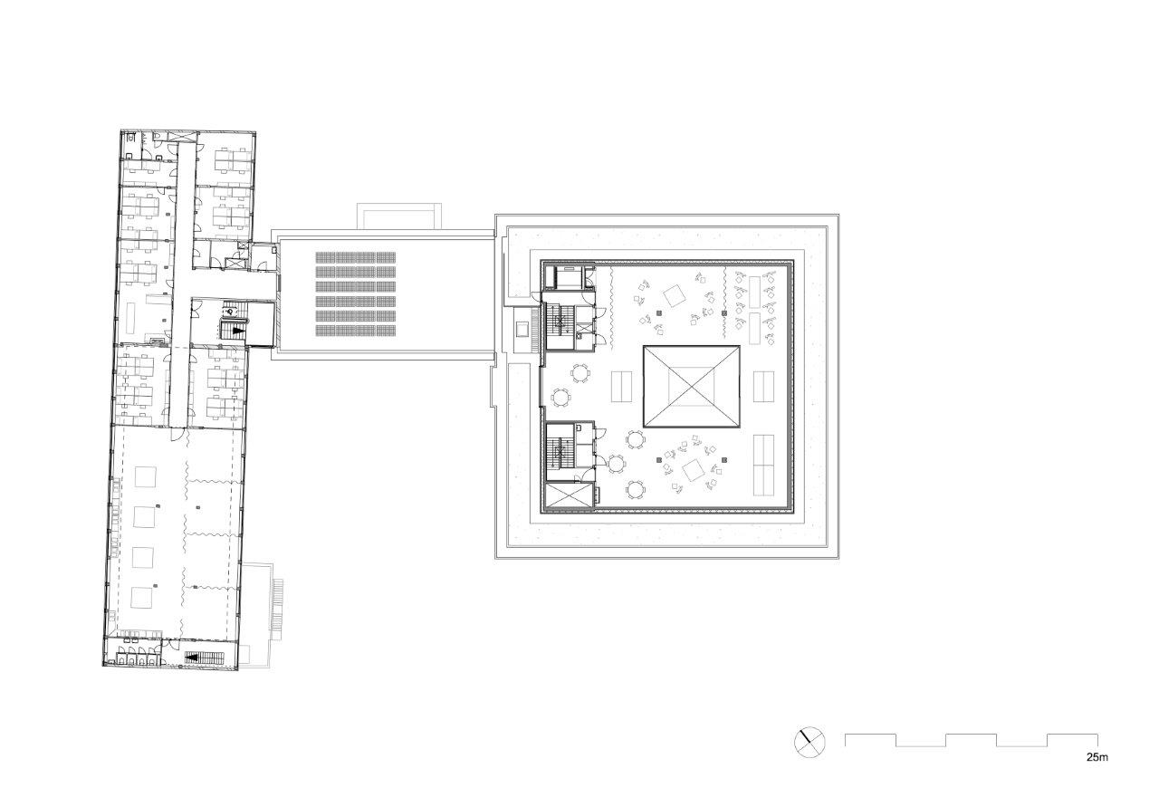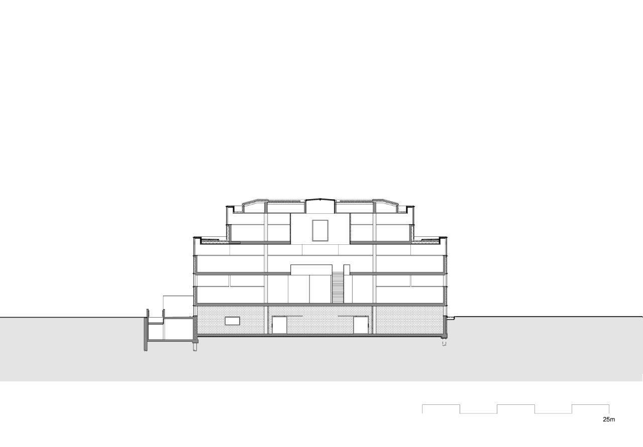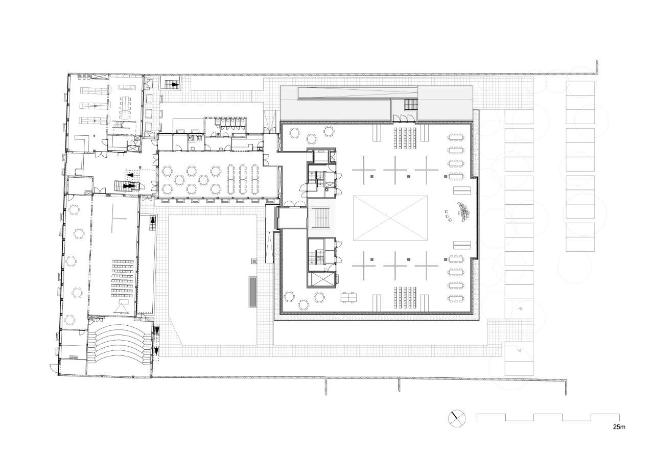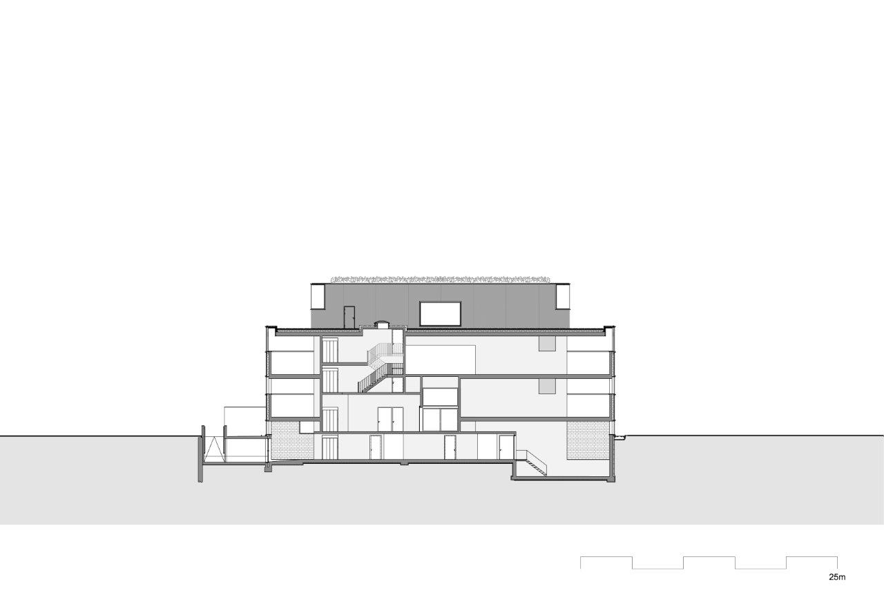 Omdat het budget geen volledige sloop van het bestaande huis toeliet, besloot Atelier Kempe Thill te kiezen voor een gecombineerde strategie van gedeeltelijk hergebruik, gedeeltelijk transformatie en gedeeltelijke afbraak om ruimte te maken voor een substantiële nieuwe uitbreiding van het instituut. Het hoofdgebouw langs de straat en de zijvleugel werden behouden, terwijl de twee kleinere auditoria aan de tuinzijde werden gesloopt.