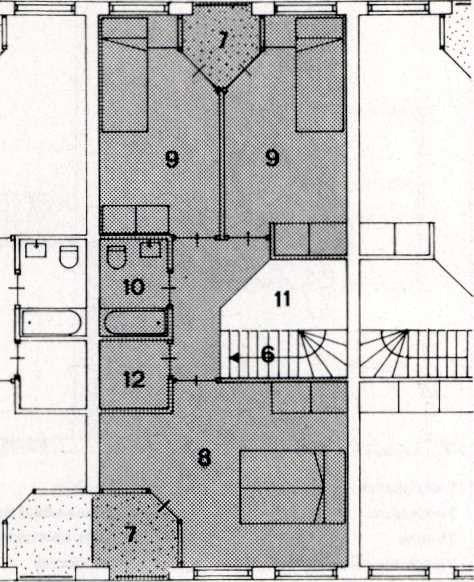 Afgezien van de grootte van de woningen ligt een grote mate van verscheidenheid in het plan besloten. De stedenbouwkundige situatie maakt dat soms in een rij de woningdiepte varieert. Een bocht in de Waterstraat geeft aan dat de aanliggende woningen een trapeziumvormige plattegrond hebben. De bejaardenwoningen, die uitkomen op de binnenzijde van het plangebied, krijgen zowel een serre als een tuintje. Verder is naast de steeds terugkerende loggia’s in een aantal woningen ook een vide te vinden. De woningen langs de Steenstraat komen aan de achterzijde uit op een galerij en bij een paar woningen tussen de Bitterstraat en het Aa plein is zelfs ruimte gevonden voor een patio. Er is sprake van wel 16 verschillende typen en de grootste serie van één type telt maar 10 woningen. De afgeknotte puntdaken of zadeldaken én de zo afwisselende plattegronden zijn door de architecten vakkundig benut voor het ontwerpen van fraaie binnenruimten waarbij de ruimtewerking vaak fascinerend is.