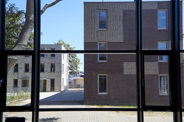 Op de voormalige parkeerplaats van het PLEM gebouw zijn vijf woonblokken met 38 grondgebonden woningen toegevoegd, rond een hof met de bestaande bomen en een nieuwe speelplaats voor kleine kinderen. Elke woning is geschikt voor acht bewoners. Deze nieuwbouw is drielaags met op de begane grond de woonkeuken en op de verdiepingen slaapkamers en sanitair.