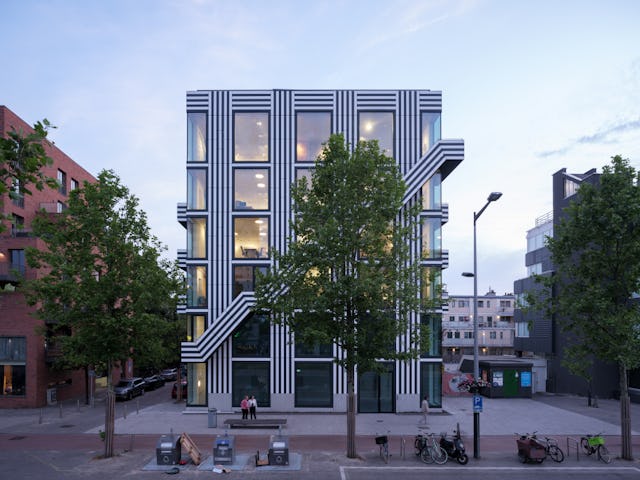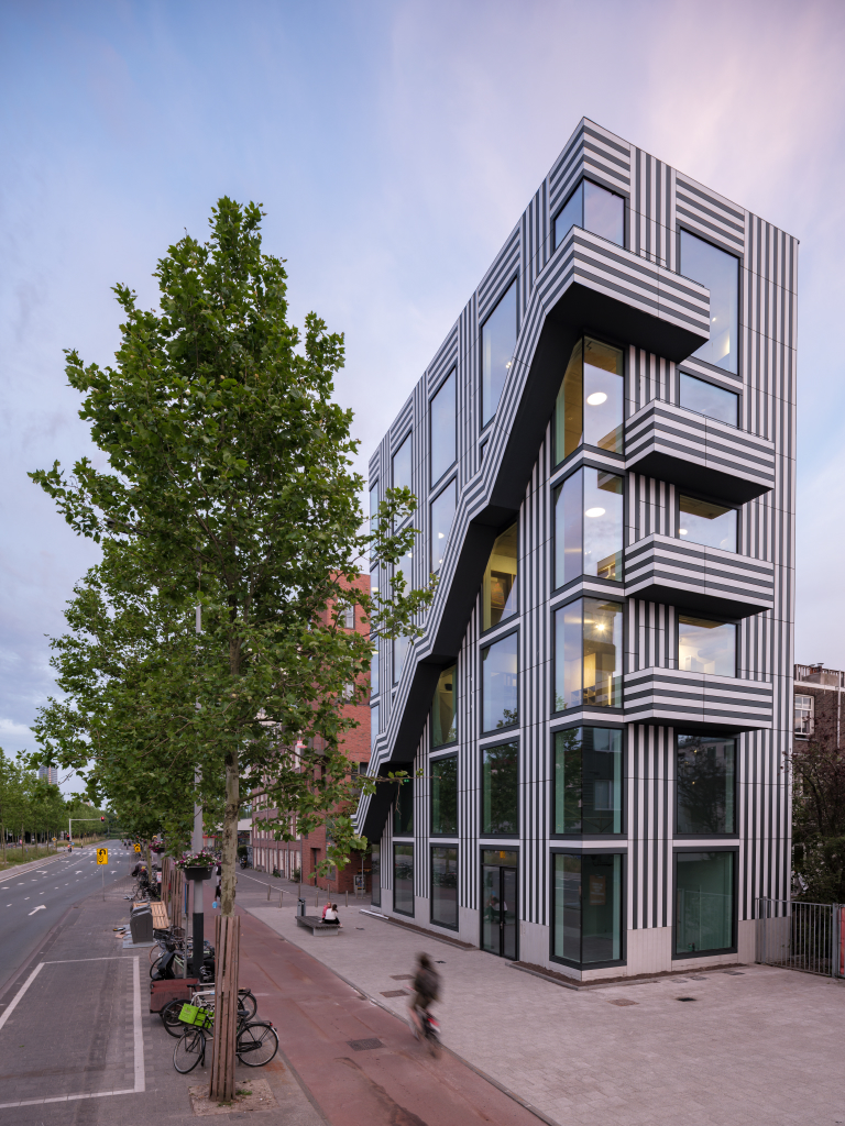 Toelichting door Thonik - Dit is het tweede gebouw dat thonik zelf ontwikkelt voor eigen gebruik. De eerste keer was op een vergeten binnenterrein aan de Weesperzijde in Amsterdam. MVRDV was toen de architect. Het hele binnenterrein transformeerde als gevolg hiervan in een binnenstedelijke oase. Dit keer is het een gebouw aan de Wibautstraat in Amsterdam, de enige grootstedelijke straat in het centrum van de stad. Dit gebouw draagt bij aan de leefbaarheid van de straat, door de passie die eraan af te lezen is en door horeca op de bgg en 1 hoog en door een eventspace op de bovenste verdieping en het dakterras. Het gebouw levert een blauwdruk voor eigen ontwikkeling in de creatieve sector, hetgeen nu nog slechts sporadisch voorkomt. Bij eigen ontwikkeling wordt de stad met passie vormgegeven en wordt de creatieve sector financieel robuuster. Dit heeft een positieve impact op de ontwikkeling van de stad. Daarom is het zo belangrijk dat het gebouw ook echt uitstraalt dat het een eigen ontwikkeling is. Bij thonik betekent dit dat grafisch vormgeving aan de basis ligt van het ontwerp.