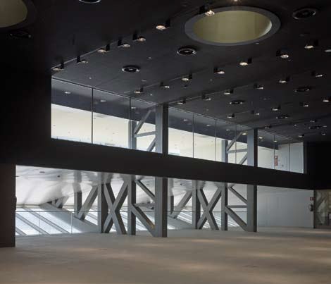 Binnen is de uitstraling van het exterieur doorgetrokken naar het interieur. Middels een enorm horizontaal raam, dat ononderbroken aan alle zijden doorloopt, opent het gebouw zich op de tweede verdieping naar de stad. Het raam vormt geen onderbreking in het volume omdat het naadloos aansluit op de huid, die het congres- en theaterprogramma strak omsluit. Hierdoor ontstaat een interessante doorsnede die herinnert aan het beeld van de slang die een olifant opeet in het verhaal van Saint-Exupéry.