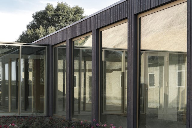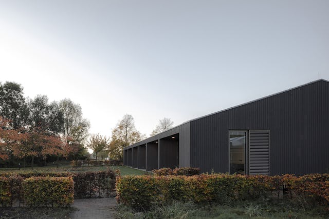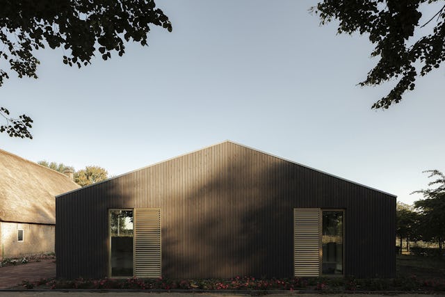 De architectuur van de uitbreiding is geïnspireerd op de donkere houten schuren die bij veel boerderijen van dit type te vinden zijn. Hierdoor vormt de boerderij samen met de ingetogen uitbreiding een harmonieus en vanzelfsprekend geheel in het landschap. Anders dan een traditionele schuur heeft de nieuwbouw een moderne vormgeving met bronskleurige kozijnen en een zinken dak met geïntegreerde zonnecellen. Zowel de draagconstructie, als de gevelbekleding en een groot deel van de interieurafwerking is van hout.