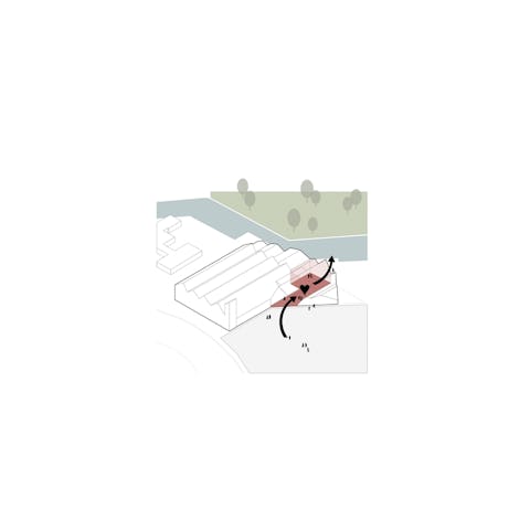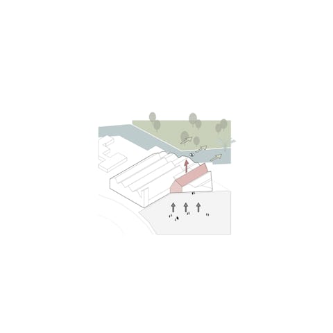 Toelichting door heren 5 architecten - Het gebouw brengt twee werelden nadrukkelijk samen; die van park en plein. Dat is zichtbaar in de architectuur met het materiaalgebruik van hout en steen, dat zowel op elkaar als op de directe omgeving aansluit.