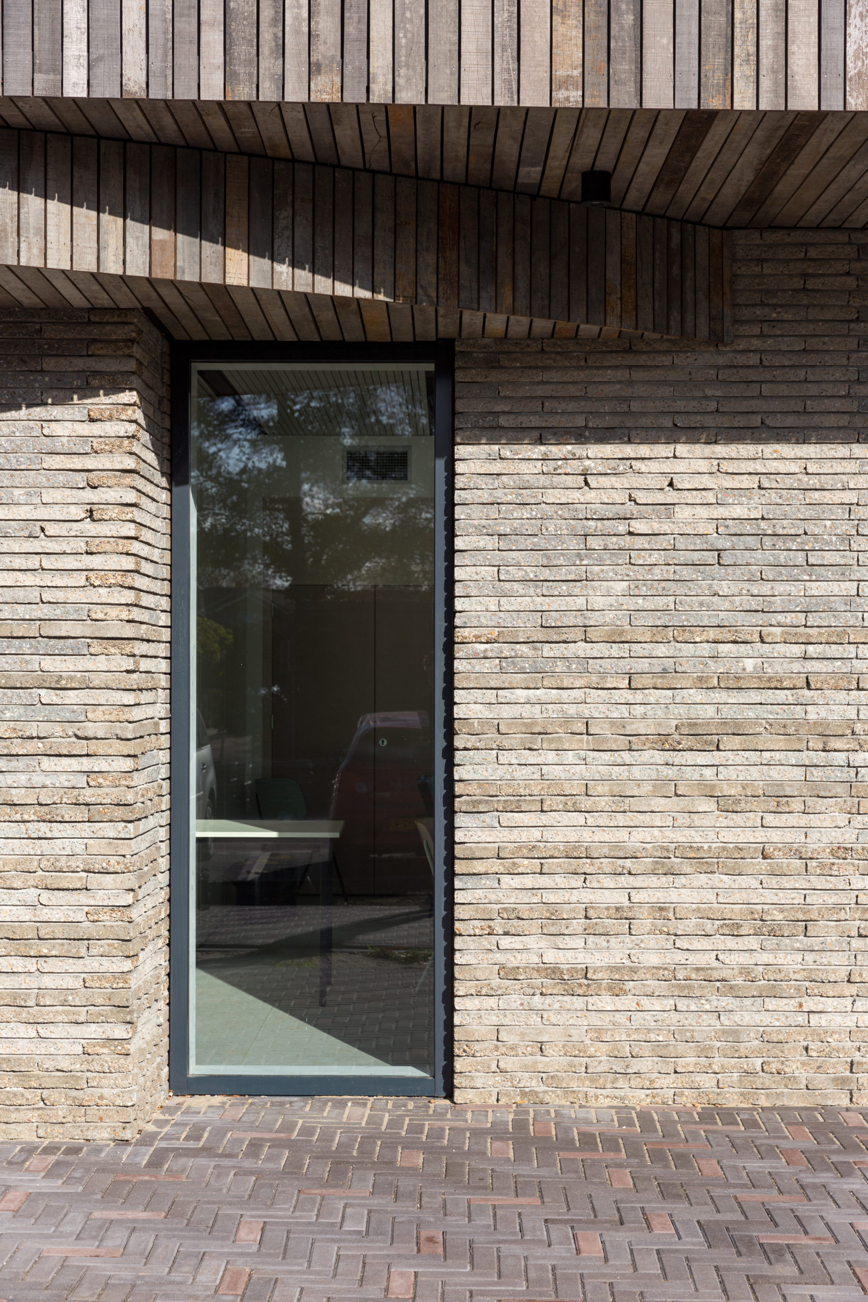 Ook bij de aannemer van de nieuwbouw, Jongekrijg+MaasBouw, ging het circulaire denken dankzij dit project in een hogere versnelling. Uitvoerder René Lonkhuizen vertelt: “Voor ons was het de eerste keer dat wij het idee van afval als grondstof zo ver doorvoerden. Het sloophout, de oude zinken goten, de oude trottoirtegels, allemaal hebben we die aangepakt, schoongemaakt, verwerkt tot nieuwe materialen en gebruikt bij de bouw. Dat was echt even omschakelen. Het is natuurlijk makkelijker om kant en klare nieuwe materialen te gebruiken. Maar het leuke is dat gaandeweg iedereen hier steeds enthousiaster werd. Toen we gingen zien wat voor moois je kunt maken van oude bouwmaterialen ging er echt een knop om. In dat opzicht is er in ons bedrijf echt een nieuw perspectief ontstaan.”