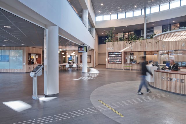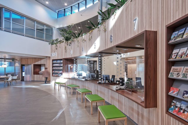 Een groene, aangename centrale publiekshal voor de dagelijkse dienstverlening