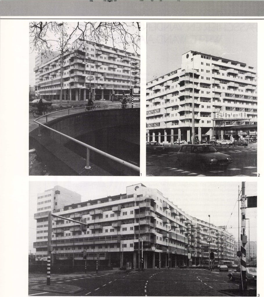 'Halverwege de jaren '70 is een nogal uitgebreide opgave onderzocht door architectenbureau Landers: een ijsbaan, een schakelstation voor het G.E.B. van volumineuze afmetingen, een parkeergarage, een middelgroot hotel en een reeks woningen. Dit programma bleek veel te omvangrijk te zijn. In samenwerking met Passchier Vandensteen, studio voor architektuur b.v. is toen naar een alternatieve mogelijkheid voor een minder omvangrijk programma gezocht. Het ontwerp, dat nu gerealiseerd is, omvat naast de ijsbaan een parkeergarage in twee lagen met 417 parkeerplaatsen, 200 woningen, 2500 m2 showroom en winkelruimte op de begane grond, 720 m2 kantoorruimte in de arcade, 4750 m2 kantoorruimte in twee 'torens' aan de Statentunnelzijde en de Conradstraat, waaronder ruimte voor een squash-center. Onder de showrooms 2500 m2 magazijnruimte.