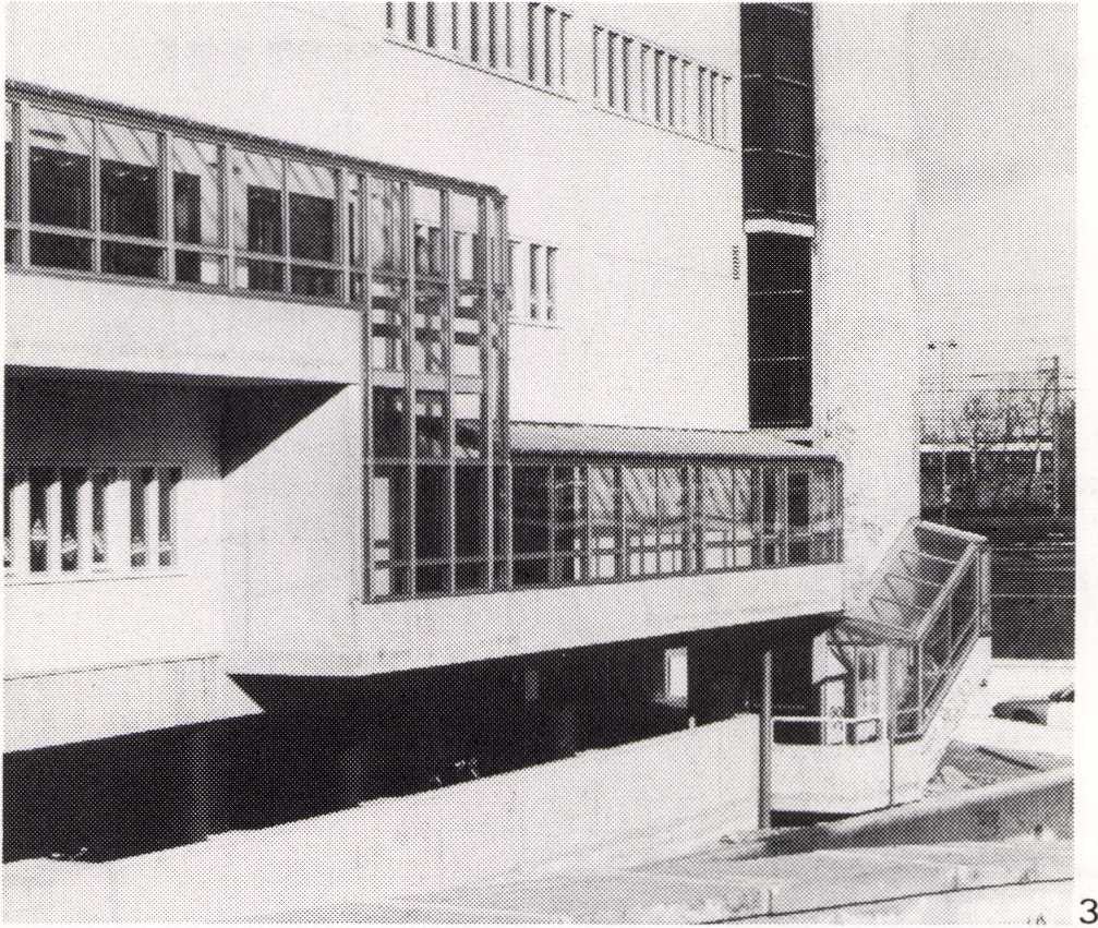 Deze buizen vormen samen met de ronde trappenhuizen de verticale elementen, die de sterk horizontale gelaagdheid doorbreken. De verbijzondering van de gevels in de knikken en op de hoeken zorgen ervoor dat de lagen niet weglopen in een eindeloos perspectief. Het Weena heeft er weer een kloek gebouw bij gekregen. Passchier hoopt dat het gebouw waardige overburen zal krijgen, wanneer de woonbuurt aan de overkant vernieuwd wordt. Hij ziet het al helemaal voor zich: drie grote kubusachtige volumes, geplaatst tegenover zijn - door de knikken in de wanden ontstane - drieledige wand.