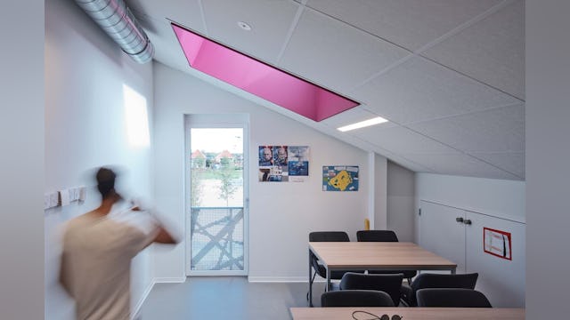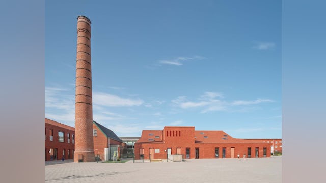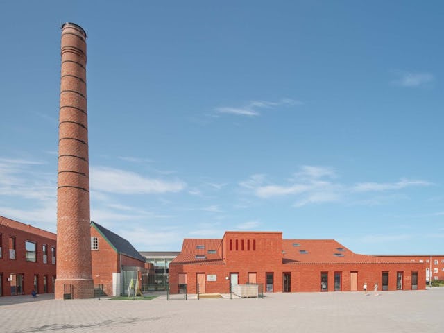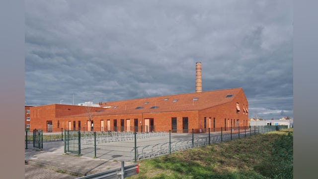 Het kindcentrum heeft in deze context een stoer uiterlijk gekregen dat verwijst naar dat boerenverleden. De twee gekoppelde bouwmassa’s, met het ketelhuis en de schoorsteen daartussen, vormen samen een robuust ensemble met gemetselde gevels van roodoranje baksteen en gewelfde dakpannen. De basis is aangevuld met een palet aan rode tinten en bijzondere metselwerkvlakken die het geheel meer diepte en karakter geven.