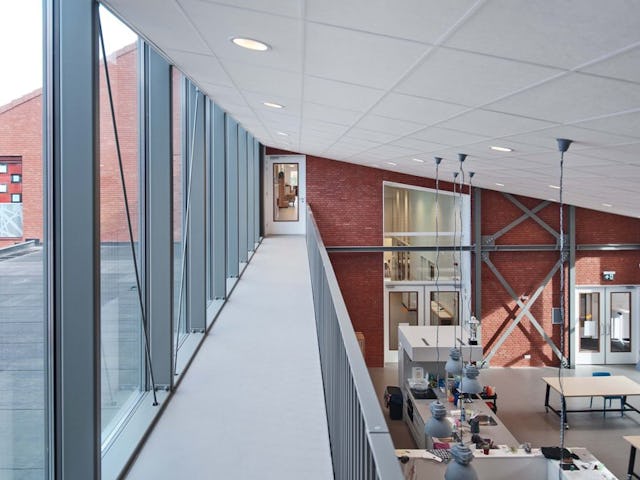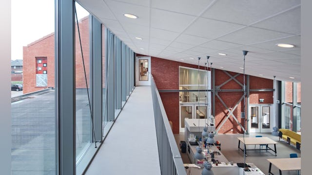 Toelichting door atelier PRO - De realisatie van het Vosholen gebouw heeft langer geduurd dan verwacht. De eerste aannemer is tijdens de uitvoering failliet gegaan. Toen de bouw weer hervat kon worden met een nieuwe aannemer, waren de scholen alweer gegroeid en moesten er meer klassen bij. Daarnaast moest het gebouw door aangescherpte regelgeving aardbevingbestendig gemaakt worden. Hier is de de kracht van de ontwerp naar voren gekomen: met beperkte aanpassingen is het gebouw met extra lokalen uitgebreid. Voor de aardbevingsbestendigheid is de constructie verstevigd en stijver gemaakt.