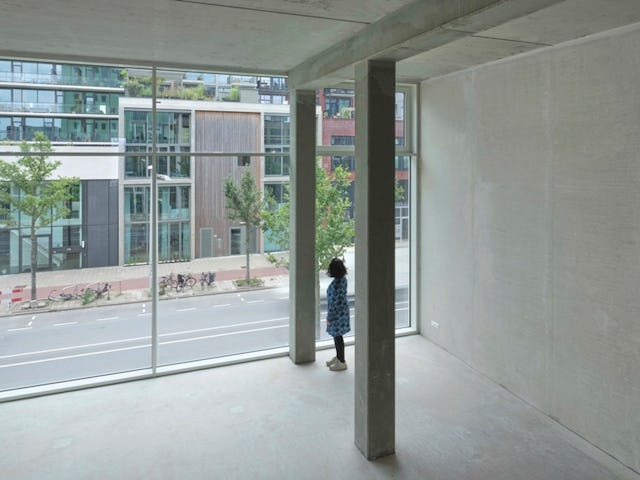 Toelichting door Sophie Valla Architects - Voor een woongebouw in collectief opdrachtgeverschap kreeg de bouwgroep een lang kavel toegewezen, dat wij – als wij wilden - volledig mochten bebouwen. Omdat het stedenbouwkundige plan echter voorziet in hoogbouw op de naastgelegen kavel, wisten wij dat de zuidwestkant van de hen toegewezen kavel voor een groot deel van de dag in de schaduw ligt.