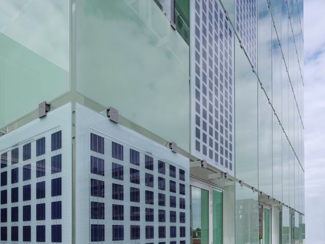 In de glazen gevel verwerkten we bovendien zonnecellen. De kabels werkten we onzichtbaar weg in de glashouders, zodat frames rondom de glasplaten niet nodig zijn. De zeefdruk en de zonnecellen werpen een patroon van schaduwen af op de gevel daarachter.