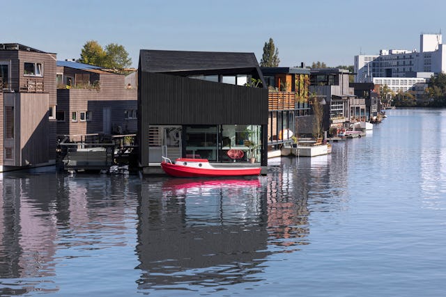 Toelichting i29 - Floating home van i29 architecten maakt deel uit van Schoonschip, een drijvend dorp van 46 huishoudens dat de meest duurzame drijvende gemeenschap van Europa wil zijn. Op basis van een stedenbouwkundig plan van Space&Matter trokken meer dan 100 bewoners naar een gerevitaliseerd kanaal en vestigden zich op het water. Het terrein is zelfvoorzienend op het gebied van energie, maakt gebruik van circulaire bouwpraktijken en dient als een voorbeeld voor duurzaam wonen.